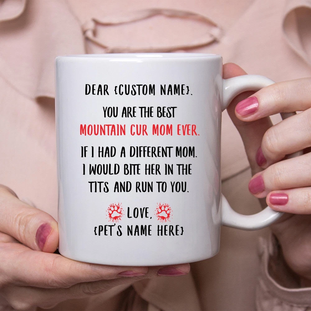 Mountain Cur Mom Gift Personalized Mothers Day Gift Mug Custom Name Gifts For Product Details.. This high quality 11oz. ceramic white mug has a premium hard coat that provides crisp and vibrant color reproduction sure to last for years. Perfect for all hot & cold beverages. The highest quality printing possible is used. It will never fade no matter how many times you wash it. Material: 100% Ceramic. Print both sides. Dishwasher and Microwave Safe. High Gloss + Premium White Finish. Printed in the U.S.A. Personalized & Custom. We support personalized and custom mug to add custom, when placing an order, you can add notes to the "order note" in shipping address section. Also you can contact us directly via message. Shipping Info. Ready to ship in 1 to 2 business days, All products are made-to-order and proudly printed in the United States. Shipped by USPS and DHL, You will receive your order in 5-7 days. Replace & Refund. All products are defective during shipping broken, chipped will be replaced free of charge. You are not satisfied with the product, we will refund 100% money to you. If any other issues arise, please do not hesitate to message, we would be more than happy to assist you.