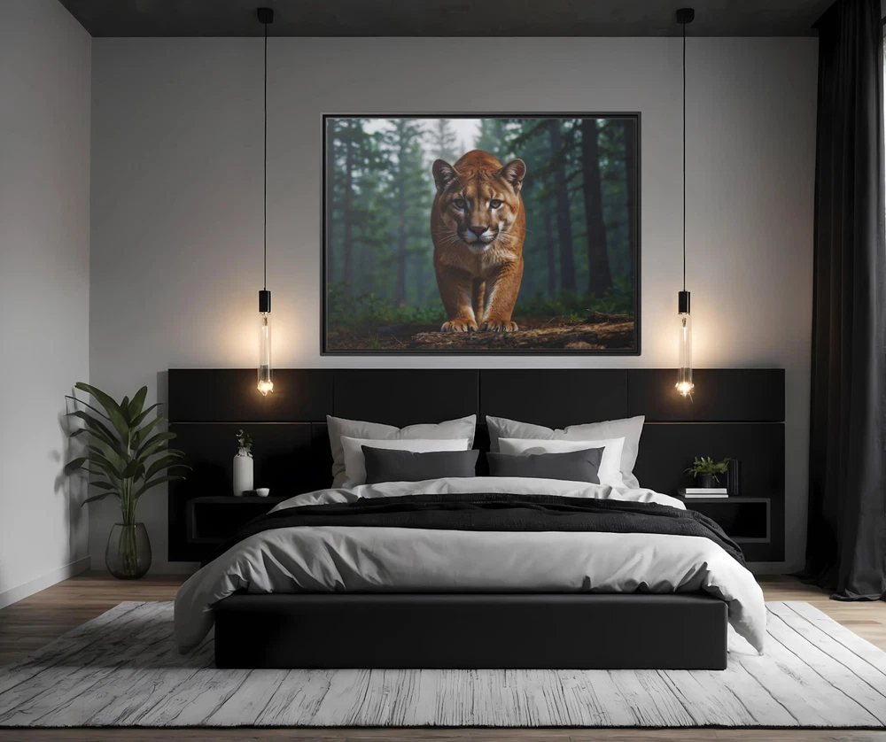 North American Mountain Lion 3D Wildlife Art | Framed Gallery Wrapped Canvas Experience the untamed beauty of nature in breathtaking detail with this Illustrative Wildlife 3D Effect Print featuring a North American mountain lion in its natural habitat. The captivating 3D effect enhances the depth and realism of the scene, bringing the majestic mountain lion to life as it prowls through its serene wilderness setting. This piece is a striking tribute to the raw beauty and grace of one of nature’s most elusive predators. Expertly printed on a cotton-polyester gallery-wrapped canvas, this artwork features stunning clarity and vibrant tones that draw the viewer into the scene. Framed in sleek black museum-quality pine wood, it combines durability with a polished aesthetic. Eco-friendly and ready to hang, this piece seamlessly blends artistry with sustainability, making it a perfect addition to any space. Key Features: 3D Effect Design: An illustrative print enhanced with a 3D effect, adding depth and realism to the mountain lion and its natural surroundings. Premium Canvas: Cotton-polyester blend canvas ensures vivid, lifelike colors and fine detail. Eco-Friendly Frame: Crafted from sustainably sourced black pine wood, offering an elegant and durable finish. Gallery Wrapped: Canvas edges are wrapped neatly for a sleek, professional appearance. Ready to Hang: Equipped with pre-installed hardware for hassle-free display. Fade-Resistant: Advanced printing techniques preserve vibrancy and detail for years. Versatile Decor: Ideal for wildlife enthusiasts, nature-inspired interiors, or creating a focal point in any room. Size Options: 24x18, 32x24, 40x30 This Mountain Lion 3D Wildlife Art is not just a piece of decor—it’s an immersive window into the wilderness. Whether displayed in a living room, office, or study, it evokes a sense of awe and appreciation for the beauty of the natural world. A perfect gift for nature lovers or those who appreciate striking and unique artwork. Unframed Semi-Gloss Photo Paper Print (180gsm) This unframed semi-gloss photo paper print is crafted from bright white satin-finished paper, delivering vibrant and sharp color fidelity. The Giclée printing process ensures bright, intense colors that resist fading, even with regular sunlight exposure. Durable and easy to maintain, simply wipe off dust gently with a clean, dry cloth to keep it looking pristine. Perfect for showcasing your favorite designs with lasting brilliance. * Shipping to Alaska, Hawaii, and unincorporated territories of the United States can take additional 7 ? 12 business days, weather permitting.
