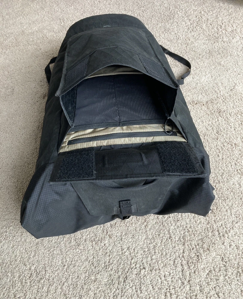 I used it for a couple months commuting to work, but I no longer have a need to carry as much stuff around. It has a massive main pocket with a small zippered pocket inside and a decent sized outside pocket with a little bit of organizing elastic pockets. This Mountain Hardwear Grotto backpack is a top-of-the-line choice for backpacking and hiking enthusiasts. With a spacious 35 L capacity, it has enough room for all your essentials and then some. The backpack features a hook and loop closure for easy access, as well as external pockets for storing your belongings. The roll top design provides added protection for your belongings, while the laptop compartment allows you to carry your work or school laptop with ease. The backpack is available in sleek black color, making it a stylish choice for any adventure.