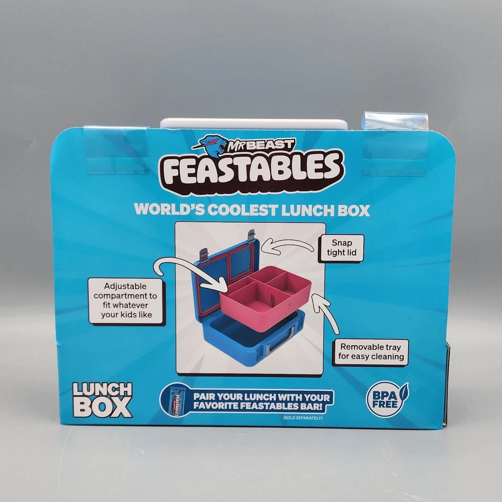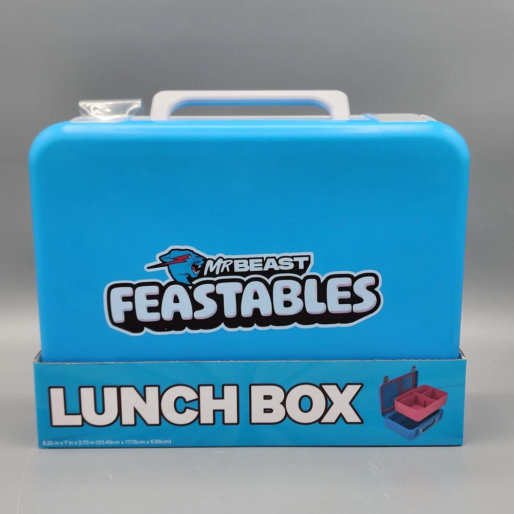 Get ready for lunchtime with this cool and stylish Mr Beast Feastables World's Coolest Lunch Box! This lunch box is perfect for any occasion and features a 2-tone pattern with blue and pink colors. It is also waterproof, making it perfect for kids who love to play and explore. The lunch box is made of high-quality plastic material and comes with a reusable lunch bag and box type. It has an assembled product dimension of 9.39 x 2.87 x 7.16 inches and weighs 2.21 lbs. The lunch box is perfect for children of all ages and is sure to be a hit with anyone who loves unique and stylish lunch containers. Brand New! See all photos!