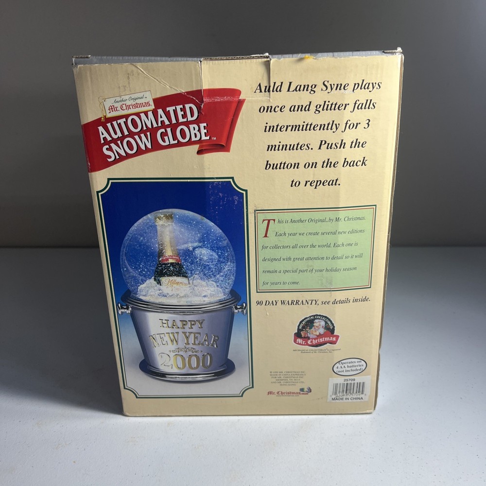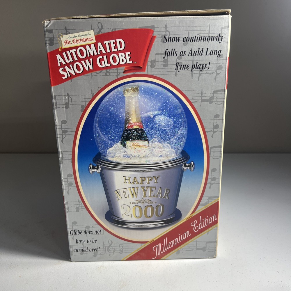 Celebrate the new millennium with the Mr. Christmas Automated Snow Globe Millennium Edition. This festive piece is a fantastic way to bring some festive cheer to your home. The globe features a happy new year 2000 design and is made of glass, plastic, and metal. The snow globe is perfect for any collector and would make a great addition to your holiday decor.