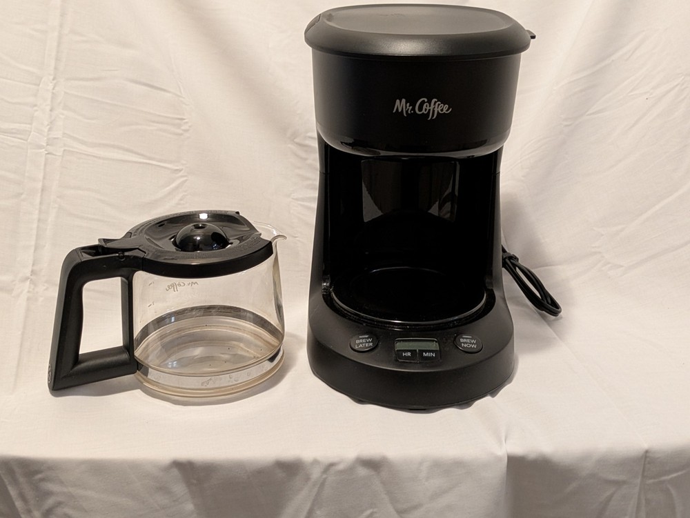 The Mr. Coffee 5 Cup Programmable Coffee Maker with Carafe is a convenient and reliable filter coffee machine for brewing your favorite ground coffee. With a capacity of 2.5 quarts and the ability to make 5 cups of coffee, this black coffee maker is easy to use and clean. Featuring a timer, programmable settings, and a display, it offers convenience and simplicity. Standing at 11 inches tall and weighing 3 pounds, this Mr. Coffee coffee maker is a sleek addition to any kitchen and a must-have for coffee lovers. It's the perfect size for small spaces such as Dorm Rooms, Apartments and RVs.