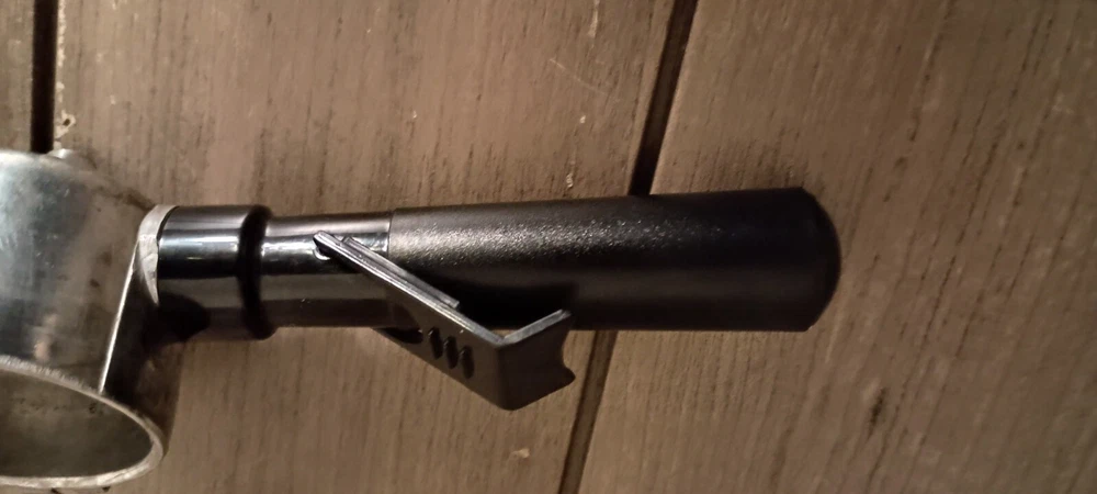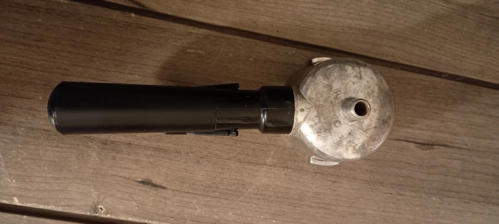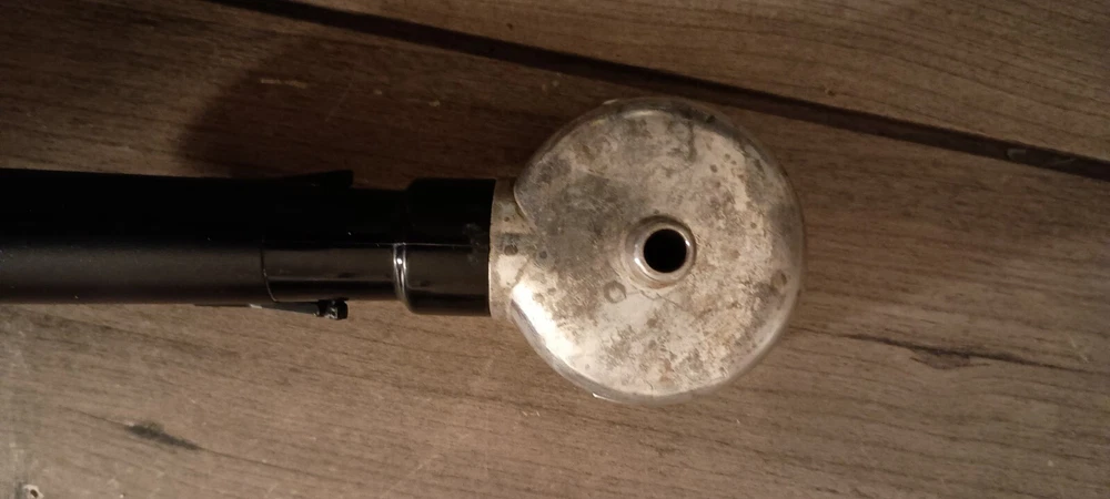 In very good condition. Has tarnished marks throughout the metal. Handle is in great condition