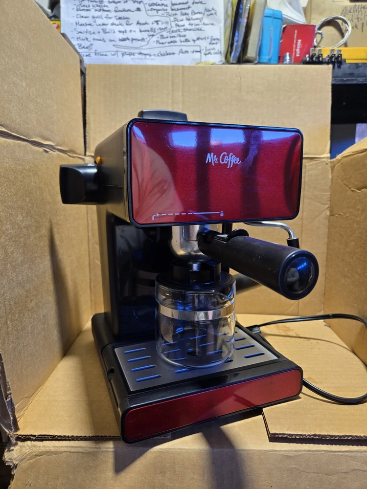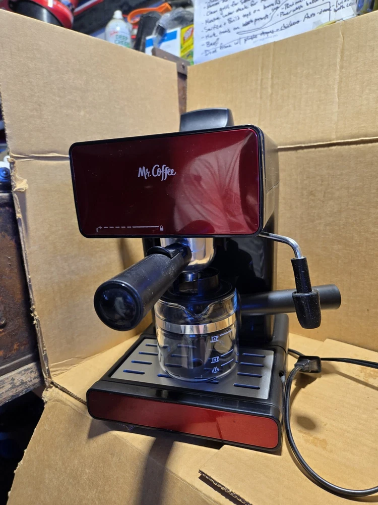 Experience the rich and flavorful taste of espresso with the Mr. Coffee Expresso Maker. This machine is designed to make your mornings a lot easier by giving you a delicious cup of espresso in no time. It is perfect for those who love ground coffee and want a quick and easy way to enjoy it. With its removable drip tray, water tank, and frother, this espresso machine is a must-have for any coffee lover. Its vibrant red color adds a pop of style to your kitchen and its compact design makes it easy to store. Get your daily caffeine fix with the Mr. Coffee Expresso Maker.