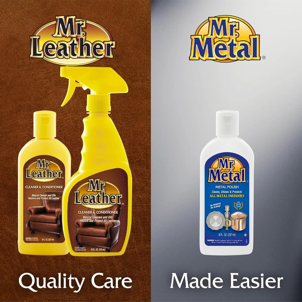 Mr. Metal Polish Liquid All Multipurpose Cleaner, One Size Product Details Is Discontinued By Manufacturer : No Product Dimensions : 3.13 x 1.31 x 7 inches; 8 ounces Item model number : 707284 Department : Unisex-Adult Manufacturer : Mr. Metal Material: Plastic Item dimensions L x W x H: 3.13 x 1.31 x 7 inches Brand: Mr. Metal Compatible Material: Metal Item Weight: 8 Ounces Multi-Surface Metal Cleaning Formula: Mr. Metal's multipurpose cleaner effortlessly dissolves tarnish and grime, restoring shine to various metal surfaces, including sterling silver, brass, chrome, copper, aluminum, and more. Easy Application with Lasting Protection: Simply wipe on the non-abrasive liquid polish and wipe off, no rubbing or buffing required. Mr. Metal also leaves behind a protective coating to slow future tarnishing. Safe for Delicate Surfaces: Formulated without harsh abrasives, this metal polish is gentle enough to use on intricate designs, clear-coated metals, and even antique or heirloom pieces without causing damage. Versatile Cleaning Solution: Whether you need a silver polish for silverware, a brass cleaner for fixtures, or a chrome polish for automotive parts, this all-in-one polish compound is your go-to solution for all metal cleaning needs. Made in the USA: Mr. Metal's metal polish is proudly manufactured in the United States, ensuring quality and reliability.