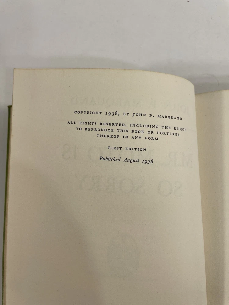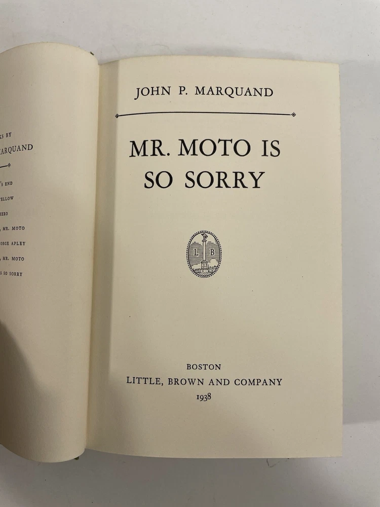 HomeMr Moto is So Sorry John P MARQUAND 1st Edition stated 1938 Little Brown HC