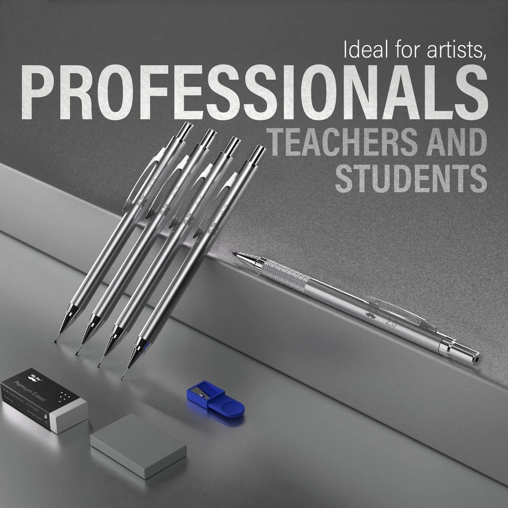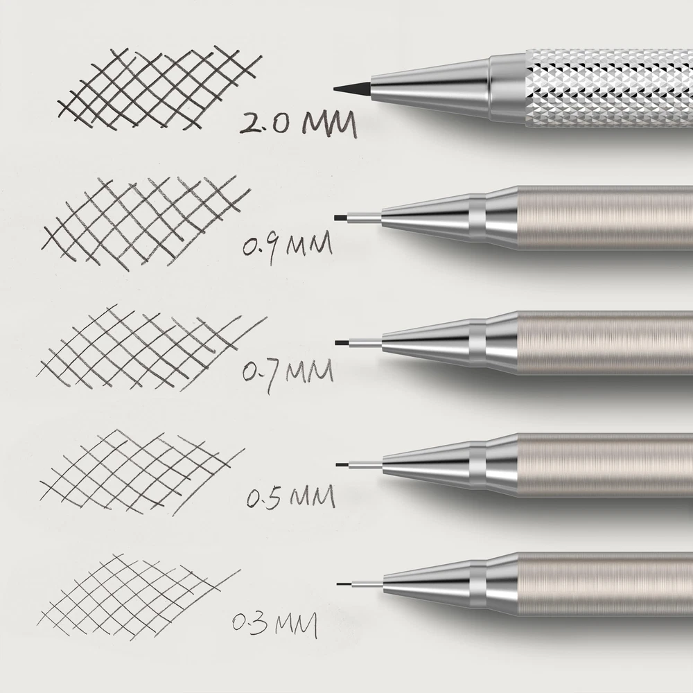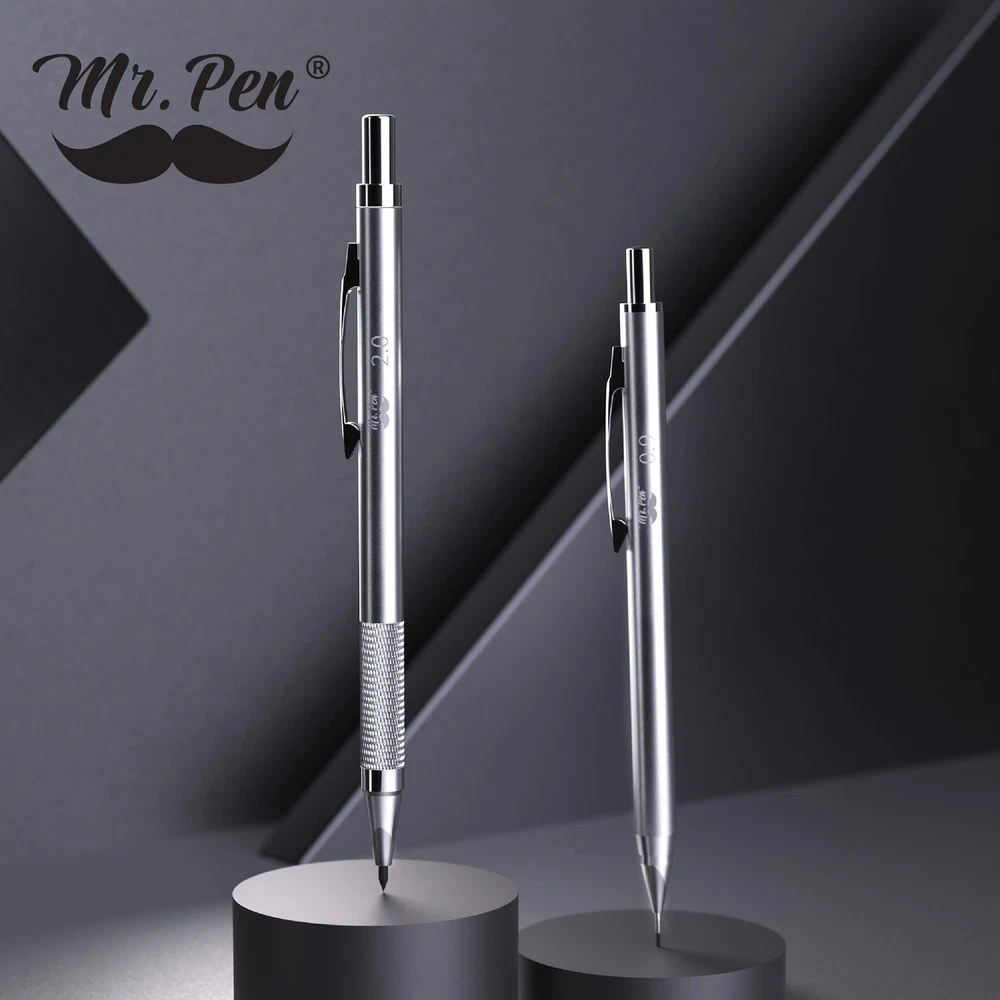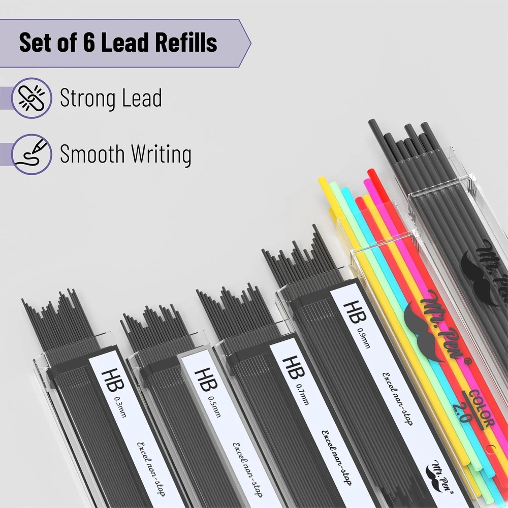 Introducing Mr. Pen metal mechanical pencil set, a versatile collection offering 5 distinct pencil sizes, ranging from 0.3 to 2.0 mm. Perfect for a wide range of writing and drawing needs. To ensure uninterrupted creativity, this set also includes a generous supply of 6 HB lead refills- no need to worry about running out of lead while you're in the zone. Mistakes happen, but fret not. We've included both a standard eraser and a kneaded eraser, along with 10 additional eraser refills, to correct any errors effortlessly. For those opting to use the 2.0 mm lead, a specialized sharpener is provided to maintain a fine point for precision work. To complete the experience, all items are elegantly packaged in a leather cover, offering both aesthetic appeal and functional utility. Introducing Mr. Pen metal mechanical pencil set, a versatile collection offering 5 distinct pencil sizes, ranging from 0.3 to 2.0 mm. Perfect for a wide range of writing and drawing needs. To ensure uninterrupted creativity, this set also includes a generous supply of 6 HB lead refills—no need to worry about running out of lead while you're in the zone. Mistakes happen, but fret not. We've included both a standard eraser and a kneaded eraser, along with 10 additional eraser refills, to correct any errors effortlessly. For those opting to use the 2.0 mm lead, a specialized sharpener is provided to maintain a fine point for precision work. To complete the experience, all items are elegantly packaged in a leather cover, offering both aesthetic appeal and functional utility.