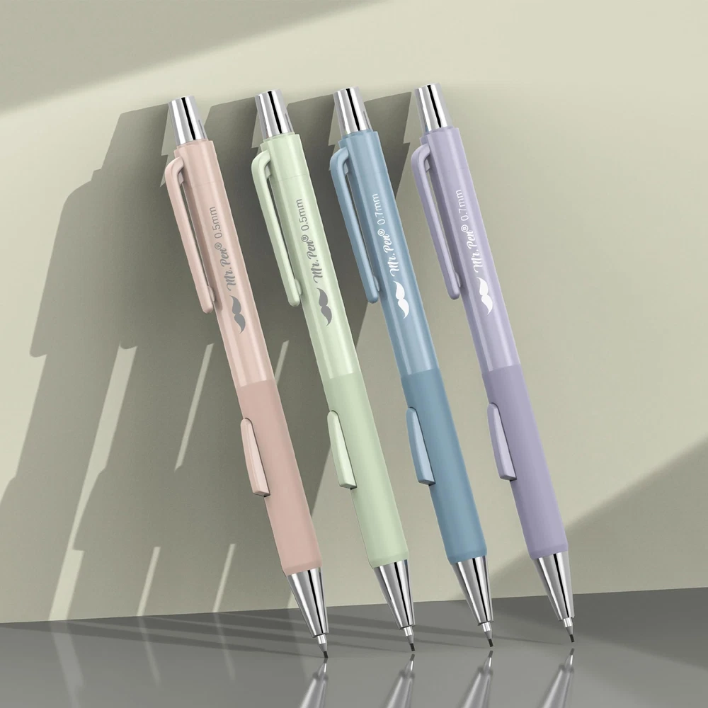 Mr. Pen pastel mechanical pencil set includes 4 quality mechanical pencils in 2 sizes: 0.5 and 0.7 mm; set of 8 lead refills, 3 erasers and 10 eraser refills. Each pencil has a comfortable grip for hours of writing comfort! The mechanical pencil is made of high-quality material. The body provides ideal weight balance for fatigue-free writing and drawing. It brings you more effective and high-quality tasks. Our mechanical pencil set is ideal for school or office use! The set comes packaged in a reusable tray with an easy-to-close lid to keep the pencils organized and protected from damage when not in use! Mr. Pen mechanical pencils set is perfect for everyday use, and they are also great for art and technical drawing. The lead is durable and will not break easily, making them an excellent choice for artists and professionals. These pencils are equipped with a mechanism that allows the lead to retract or extend rapidly. This feature is particularly useful when you need to work quickly, as it saves time and effort compared to traditional pencils that require manual sharpening or refilling. Mr. Pen pastel mechanical pencil set includes 4 quality mechanical pencils in 2 sizes: 0.5 and 0.7 mm; set of 8 lead refills, 3 erasers and 10 eraser refills. Each pencil has a comfortable grip for hours of writing comfort! The mechanical pencil is made of high-quality material. The body provides ideal weight balance for fatigue-free writing and drawing. It brings you more effective and high-quality tasks. Our mechanical pencil set is ideal for school or office use! The set comes packaged in a reusable tray with an easy-to-close lid to keep the pencils organized and protected from damage when not in use! Mr. Pen mechanical pencils set is perfect for everyday use, and they are also great for art and technical drawing. The lead is durable and will not break easily, making them an excellent choice for artists and professionals. These pencils are equipped with a mechanism that allows the lead to retract or extend rapidly. This feature is particularly useful when you need to work quickly, as it saves time and effort compared to traditional pencils that require manual sharpening or refilling.