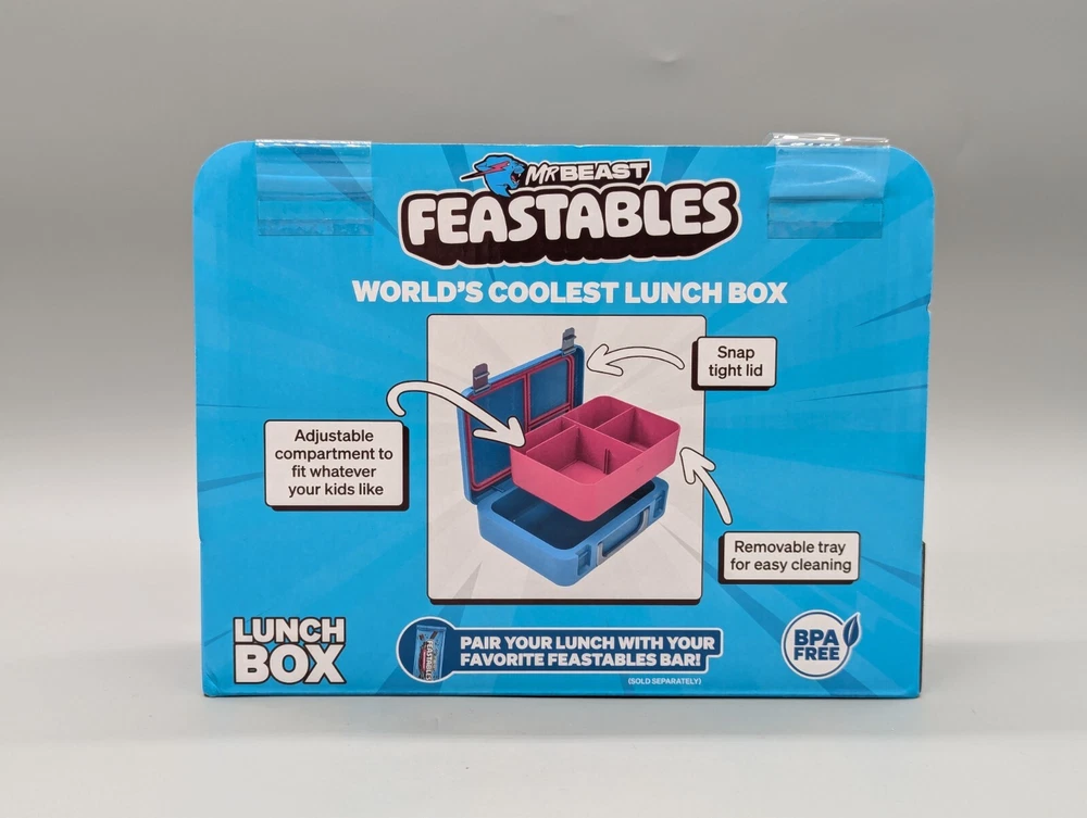 MrBeast Feastables World's Coolest Collectible Lunch Box BPA-Free Blue Pink