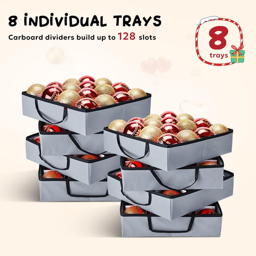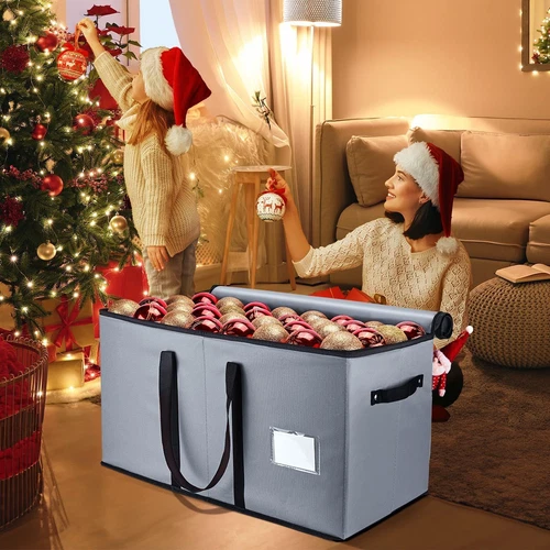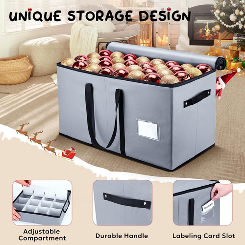 Mrrihand Christmas Ornament Storage Box, Ornament Storage Container with 8 Trays-Xmas Decoration Organizer Keeps 128 Holiday Ornaments 3-Inch, Dual Zipper Closure, 600D Tear-Proof(Grey) LuxeFusion Product Description Features [Extra Large Storage Capacity] : The Christmas ornament storage box comes with 8 separate trays and can hold 128 Christmas ornaments - 3 inch. You can adjust the dividers to store Christmas decorations of different sizes. [600D Durable Material] : This ornament organizer is made of high-quality 600D Oxford fabric, protecting your Christmas decorations from moisture and dust, allowing your Xmas ornaments to look new every holiday. This Christmas container is very sturdy with its premium zipper closure and double stitching. [Easy to transport and storage] : There are handles on both sides of the Christmas ornament storage box, and a longer handle on the top of the Christmas organizer, which makes it easy for you to transport it to any location at any time. It is foldable, does not take up space, and is convenient for storage. [Thoughtful Design] : There are two extra large pockets on the back of this Christmas container, which can hold some dolls, cards, scissors, tape, and ribbon items. In addition, there is a transparent card slot on the front of the ornament storage box for easy labeling. Product Details Brand: Mrrihand Color: Grey Material: Oxford Cloth Special Feature: Adjustable Style: Modern Recommended Uses For Product: For Christmas Ornaments Product Dimensions: 25.47"L x 12.87"W x 13.38"H Closure Type: Zipper Water Resistance Level: Water Repellent Opening Mechanism: Zipper Shape: Rectangular Pattern: Solid Number of Items: 1 Number of Compartments: 8 Unit Count: 1.0 Count Item Package Quantity: 1 Material Feature: Durable and tear-resistant Occasion: Christmas Manufacturer: Mrrihand Part Number: MHD-343 Item Weight: 6.82 pounds Item model number: MHD-343 Special Features: Adjustable Batteries Included?: No Batteries Required?: No Brand: Mrrihand Color: Grey Material: Oxford Cloth Special Feature: Adjustable Style: Modern 🚚 Free Shipping All orders ship free and fast to your doorstep. 🔁 Easy Returns Satisfaction guaranteed. 30-day returns, no questions asked. 💬 24/7 Support Contact us anytime; we’re here to help, day or night. Brought to you by LuxeFusion – Quality you can trust.
