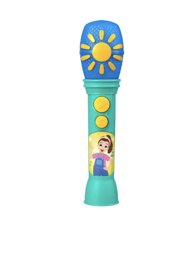 Musical toy for toddlers Sing along to built-in music Real working microphone Lights flash along to the music Lightweight and portable design Features built-in songs like "Old MacDonald," "I'm so Happy," and "The Wheels on the Bus" for endless sing-along fun! 3 AAA Alkaline, Required, Included From pet and smoke free environment New with box