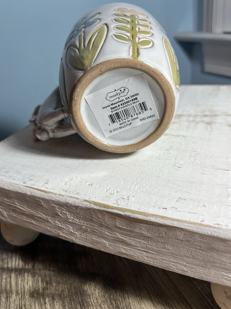 Mud Pie 4” ceramic Bunny handles with flowers coffee mug. Adorable for Spring.