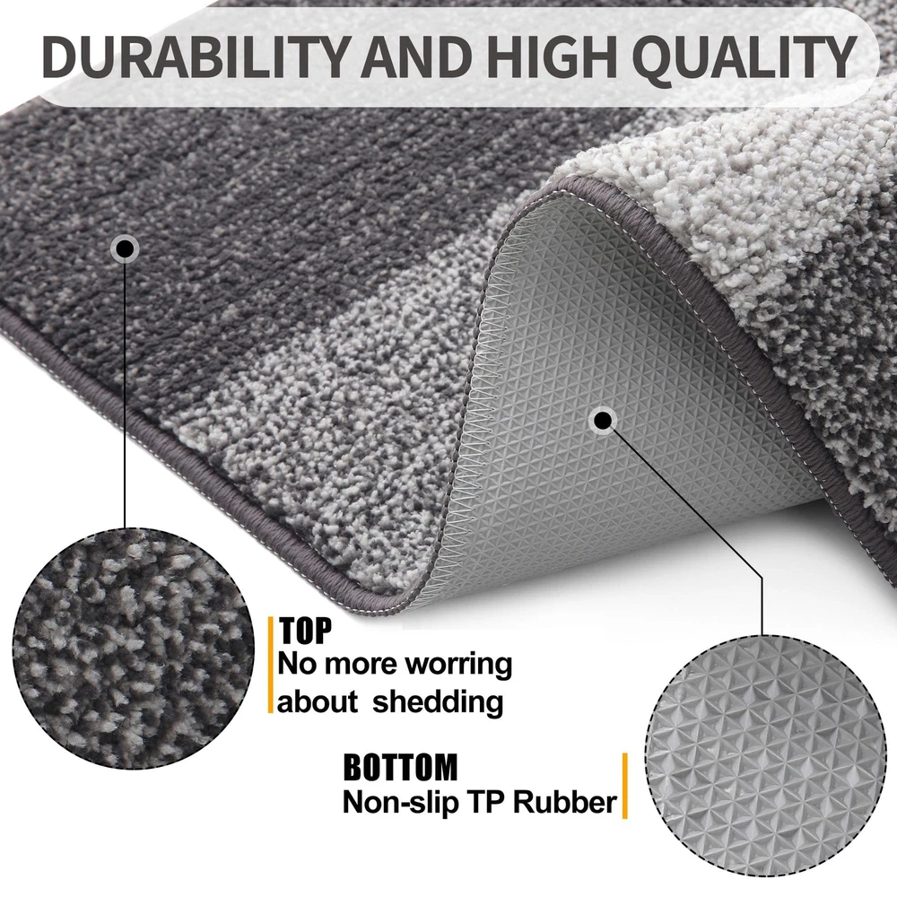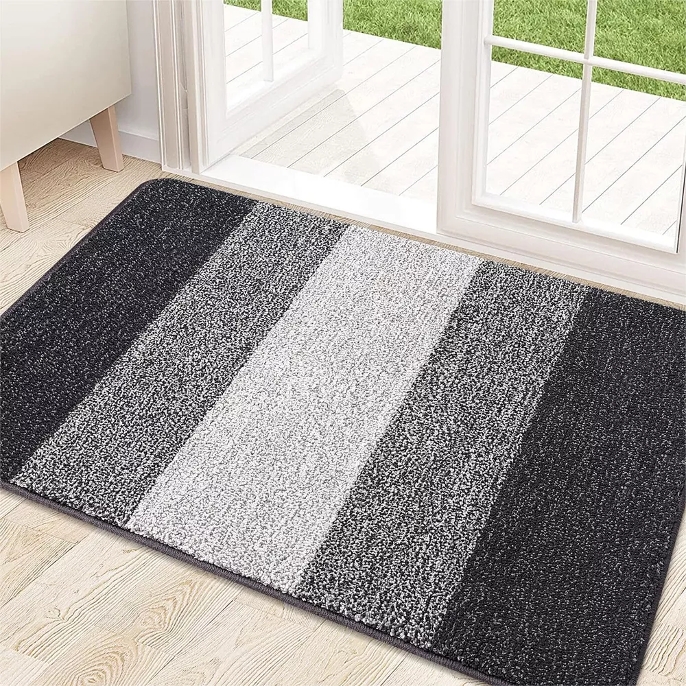 PLEASE NOTE: Since doormats are folded packed, it is normal that items may arrive with creases. Don't worry, it will not affect the use. Please machine wash flat for 2-3 days, patiently wait for wrinkles to recover, or use a hot iron on a wet towel, wrinkles will disappear completely. ABSORBS MOISTURE AND DIRT:Kitinjoy indoor doormats effectively trap water, mud, and dirt. Countless polyester fibers keep indoor areas clean, and dry. Even rain, snow, or muddy weather can protect the floor from spills or stains. STURDY & NON-SLIP: These indoor doormats are made of good quality polyester microfiber with sturdy braided edges for more durability; Non-slip TP Rubber keep them firmly in place and are able to prevent trips and falls. Make sure the floor is clean and dry before placing. LOW PROFILE & VERSATILE: The 0.4 inch thickness makes our doormat suitable for most entrances. Doors can be opened and closed smoothly without fear of tripping. The fashion design and multiple options can be widely used indoor and outdoor, kitchen, front door, entrance, patio, garage, laundry, bathroom, etc. EASY TO CLEAN: Doormats can be cleaned off with a broom or vacuum cleaner, or using a vacuum cleaner. They can also be machine washed separately in cold water with a mild detergent, dried, or dried through low temperature. Do not use bleach or fabric softener.