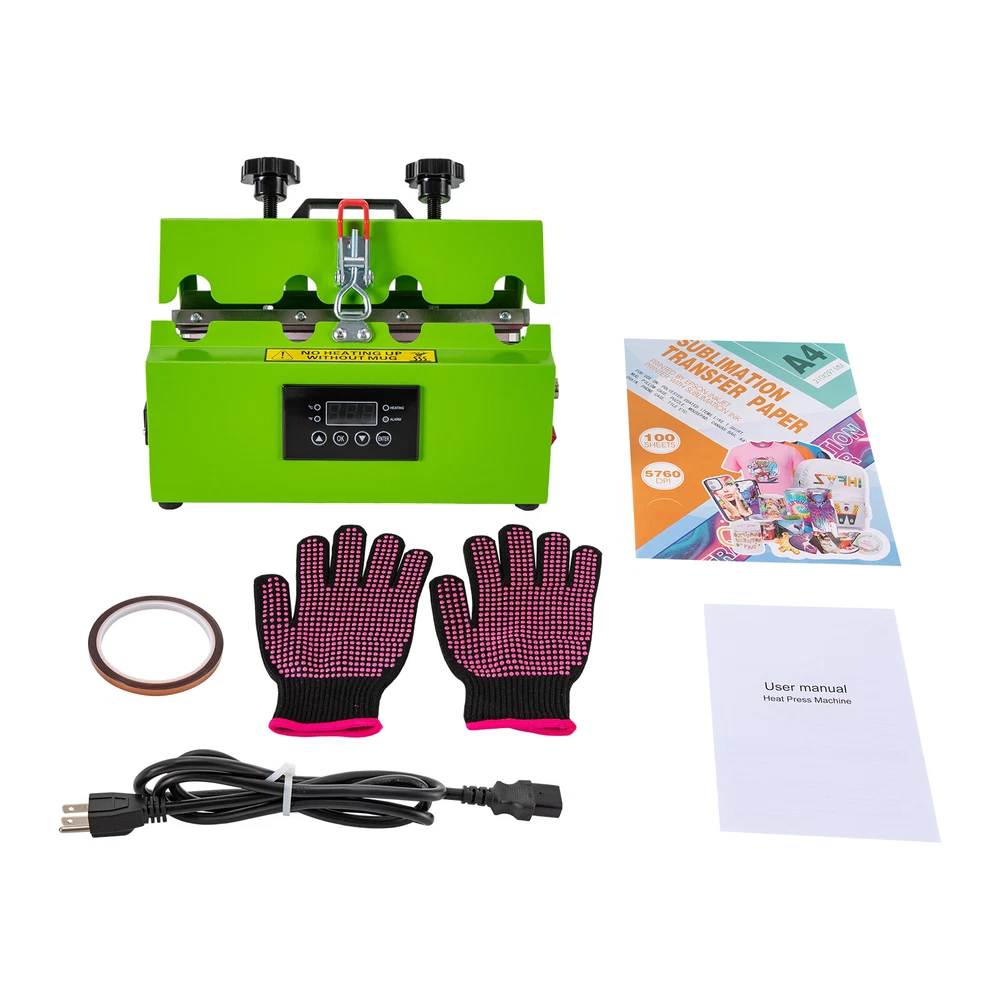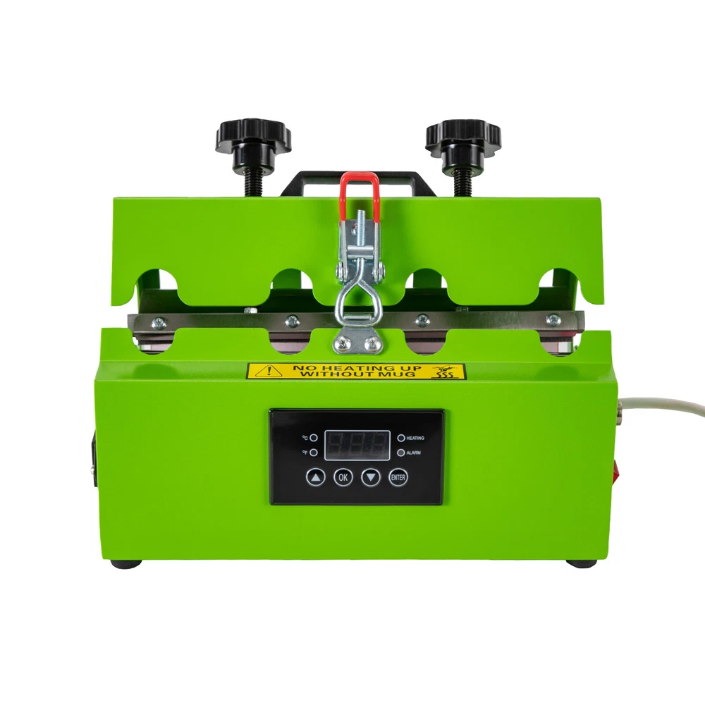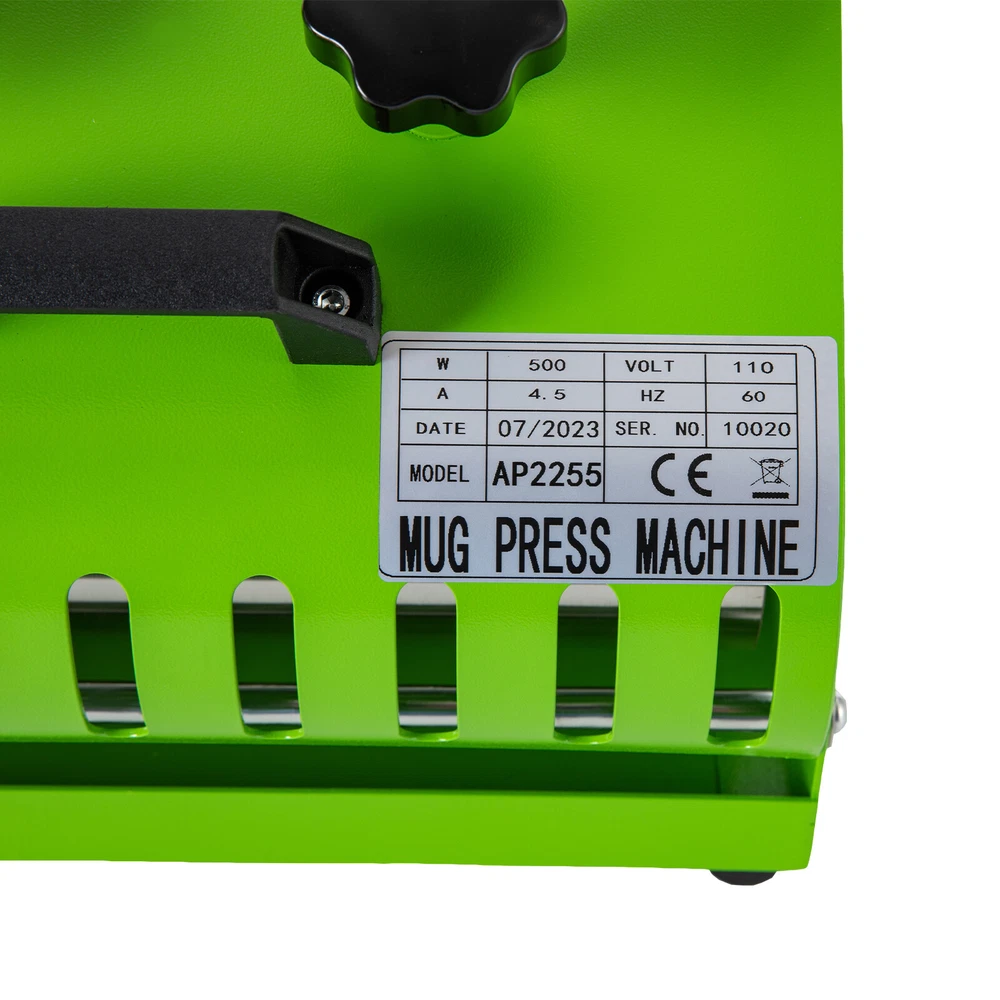 Specification Material: Stainless Steel, Iron, Silicone Surface Treatment: Spray Molding Model: AP2255 Color: Green Style: Modern Plug Standard: US Standard Power Cord Length: 1.5m/4.92ft Capacity Range: 0.26-0.7 L/11-30 Oz Numbers of Items: 1 Assembly Required: Yes Mount Type: Desktop Display Type: LED Operation Method: Electric, Touch Keys Power: 500W Voltage: 110V, 60Hz Current: 4.5 A Timing Range: 0-999s Temperature Range: 0-200℃/32-392℉ Applicable Cups: 7.2-8.5cm/2.8-3.3inches in Diameter, Within 27cm/10.6 inches in Height Product Size: 30*20*20cm/11.81*20*7.87in Cup Holder Size(L*D): 27*6.6-8.4cm/10.63*2.6-3.3in Package Size: 39*28*30cm/15.3*11*11.8in Gross Weight: 6.5kg/14.3lbs Net Weight: 5.9kg/13lbs Mug Cup Heat Press Tumbler Heat Press Machine Sublimation Printing 11oz-30oz USA Mug Cup Heat Press Tumbler Heat Press Machine Sublimation Printing 11oz-30oz USA Description There is nothing more special than a handmade gift. With a hand-stamped tumbler, you can show your friends and family how much you love them. This tumbler press machine comes with touch keys and an LED screen, which is easy to set up temperature and time. The compact size(11.81*20*7.87in) does not take up too much desktop space. It heats quickly and evenly, printing a bright and uniform pattern on your cup, making it an ideal product for DIY lovers. Key Features Sturdy and Durable: The high-quality stainless steel, iron with spray molding and silicone make it resistant to rust, corrosion, deformation, tear, and wear, ensuring sufficient durability. Long-lasting: High-quality heating wire makes the printed patterns or words clear and brightly colored without easily fading after washing about 3000 to 5000 times and will not damage the cup, allowing you to use it with confidence. Trouble-free to Use: You just need to print the pattern, then put the cup and paper into the machine, and set the parameters. After heating for a while, a beautiful customized cup is completed. It is simple and convenient, even beginners can operate it with ease. Considerate Design: The sensitive touch keys and a clear LED display allow you easily to set time(0-999s) and temperature(32-392℉) and monitor the product's working status in real-time, making it also suitable in dim areas or at night and providing you with more convenience. Two adjustable pressure knobs allow the product to fit cups within 2.8-3.3inches in diameter and 10.6 inches in height, offering possibilities for creativity. Safe Protection: Multiple heat dissipation holes, the fuse, overheating, and overvoltage protections ensures it can dissipate heat timely to avoid burning or breakdown and provide a safer and more stable operation. Meanwhile, intelligent audible alert provides greater safety and accuracy for your use. Temperature Conversion : Two temperature conversions (°C and °F) allow you to set the temperature without having to convert the temperature units yourself, thus satisfying your temperature setting needs. Ergonomic Design: The contour shape of the pressure regulating handles and the lifting handle are designed to fit your palm naturally for easy adjustment and movement. Free to Installation: You can use this product after receiving it directly without tedious and complicated assembly, saving you time and labor. Easy Clean-Up: The smooth surface and simple structure allow for easy access to its components and you can wipe the surface clean with a towel. Ideal Gift: With its elegant appearance and practicality, it is an ideal gift for birthdays, congratulations, graduations, and weddings and you can DIY unique cup patterns for your friends and families to send your unique wishes on Christmas, anniversaries, and thanksgiving. Protective Packaging: The solid box and sponge provide comprehensive protection for products to ensure that it is fully delivered to you to the greatest extent possible. Guaranteed Customer Service: We aim to provide quality products and services. If you have problems, please feel free to contact us. We will reply and solve the problem for you as soon as possible. Details Anti-slip Feet: They can further maintain the stability of the product and ensure smoother operation. Pin and Lock: The threaded pin and lock catch ensure a tight connection between the cover and the body to ensure a uniform and beautiful pattern. Gloves: Gloves with high-temperature-resistant PVC particles can play a good role in anti-slip and heat insulation, thus making your use safer. Long Wire: The 4.92ft long wire reduces usage restrictions, and allows stable and reliable current and voltage, ensuring a safer use. Heat Transfer Pad : The thicker heat transfer pad allows the product to heat up faster and more evenly, resulting in a more complete print and clearer colors. Rounded Corners: Round edges and corners provide a comfortable and safer touch during use. Application It is suitable for straight cups with a thermal sublimation coating and with a diameter of 2.8-3.3in and a height of less than 10.6in, such as straight glass cups, mugs, cylinder cups, mugs, ceramic cups, and cups with handles. It can print different types of patterns or text, such as names, photos, and company logos, so it can be applied to different scenarios, such as business gifts, family gatherings, and event planning. Specification Material: Stainless Steel, Iron, Silicone Surface Treatment: Spray Molding Model: AP2255 Color: Green Style: Modern Plug Standard: US Standard Power Cord Length: 1.5m/4.92ft Capacity Range: 0.26-0.7 L/11-30 Oz Numbers of Items: 1 Assembly Required: Yes Mount Type: Desktop Display Type: LED Operation Method: Electric, Touch Keys Power: 500W Voltage: 110V, 60Hz Current: 4.5 A Timing Range: 0-999s Temperature Range: 0-200℃/32-392℉ Applicable Cups: 7.2-8.5cm/2.8-3.3inches in Diameter, Within 27cm/10.6 inches in Height Product Size: 30*20*20cm/11.81*20*7.87in Cup Holder Size(L*D): 27*6.6-8.4cm/10.63*2.6-3.3in Package Size: 39*28*30cm/15.3*11*11.8in Gross Weigh
