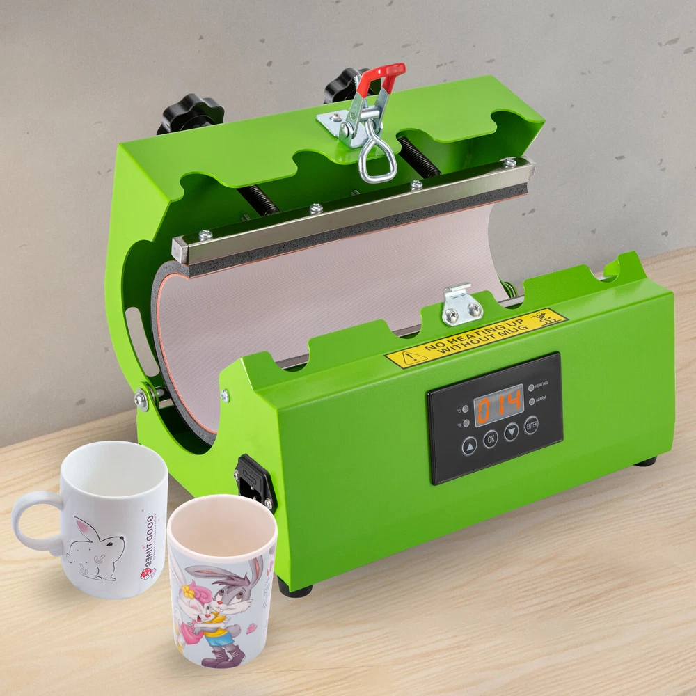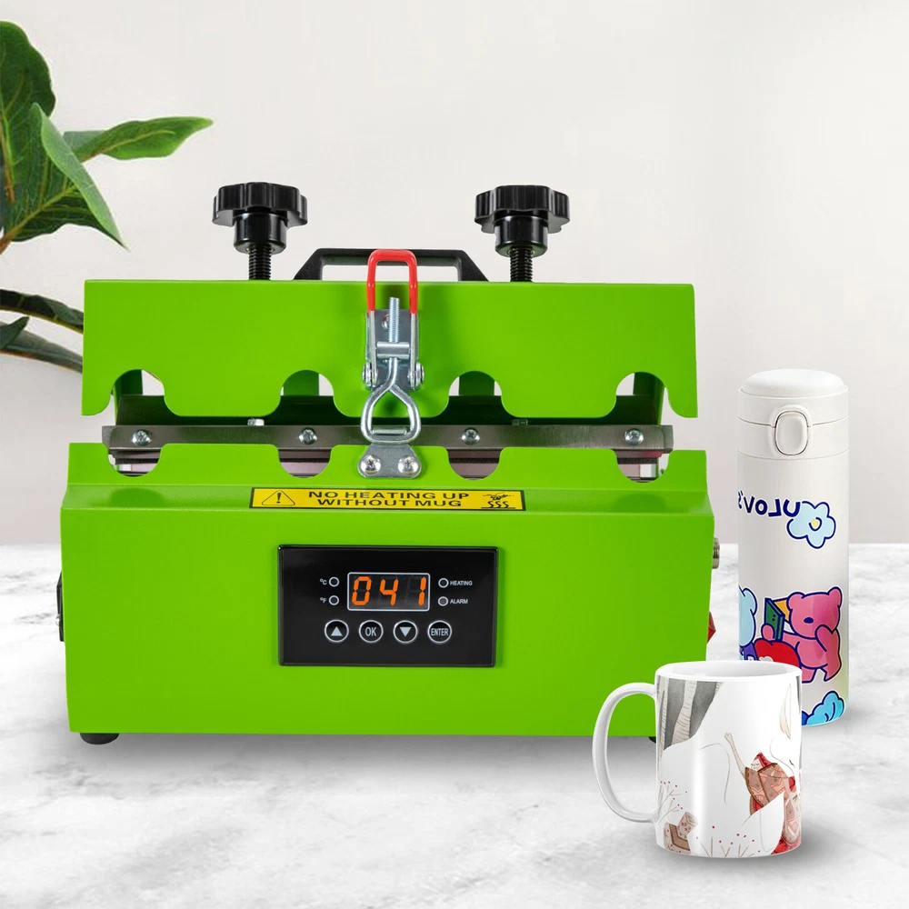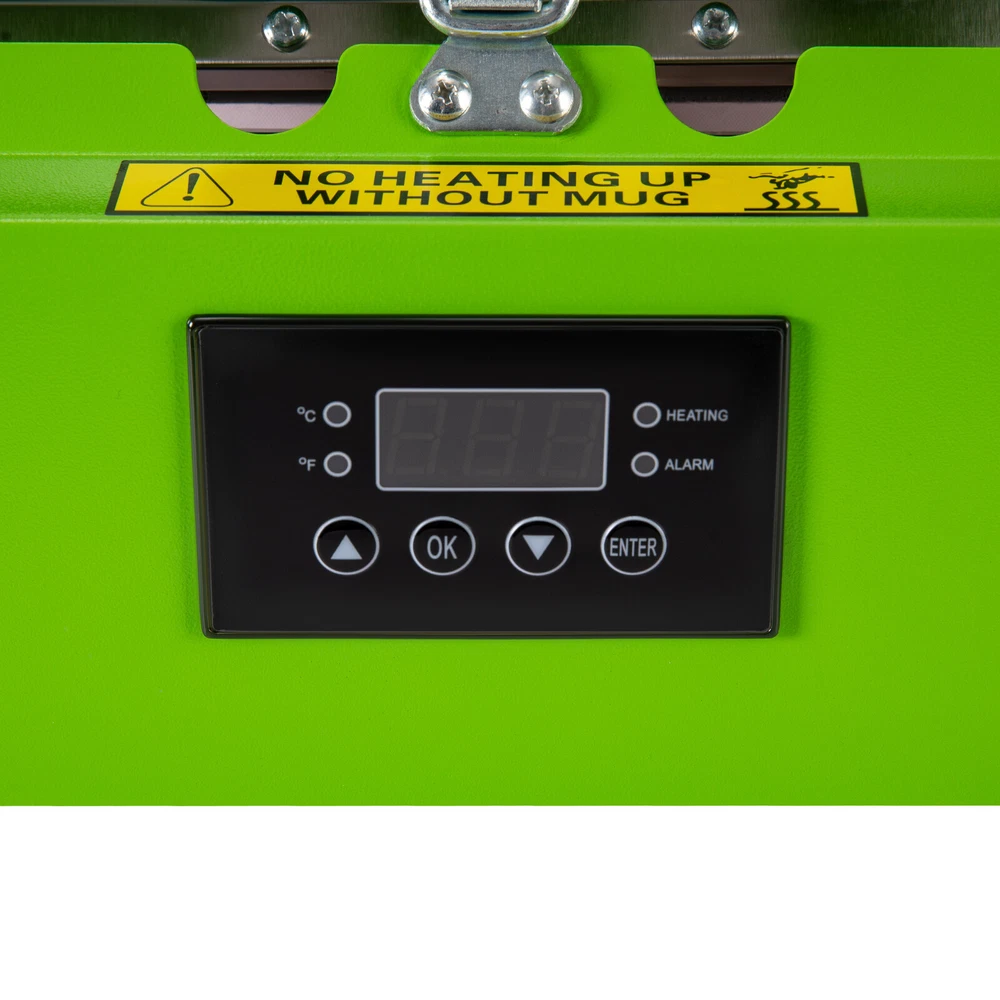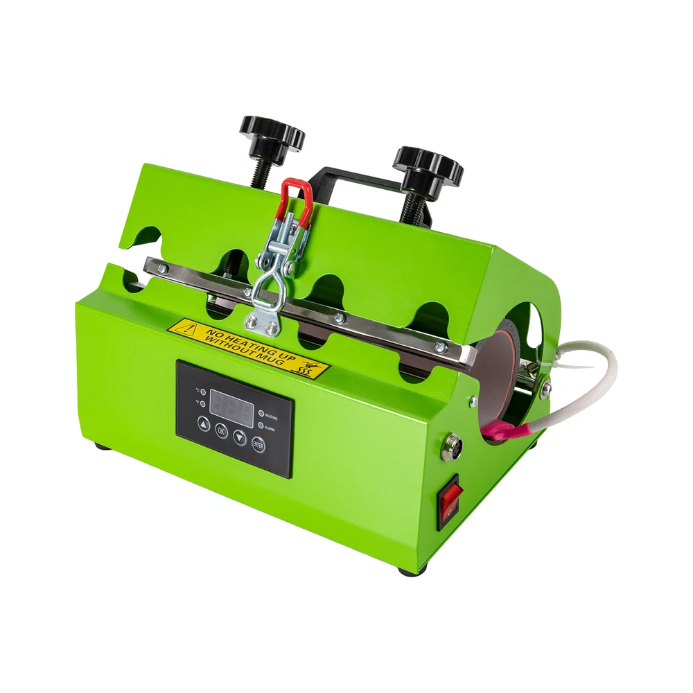 Specification Material: Stainless Steel, Iron, Silicone Surface Treatment: Spray Molding Model: AP2255 Color: Green Style: Modern Plug Standard: US Standard Power Cord Length: 1.5m/4.92ft Capacity Range: 0.26-0.7 L/11-30 Oz Numbers of Items: 1 Assembly Required: Yes Mount Type: Desktop Display Type: LED Operation Method: Electric, Touch Keys Power: 500W Voltage: 110V, 60Hz Current: 4.5 A Timing Range: 0-999s Temperature Range: 0-200℃/32-392℉ Applicable Cups: 7.2-8.5cm/2.8-3.3inches in Diameter, Within 27cm/10.6 inches in Height Product Size: 30*20*20cm/11.81*20*7.87in Cup Holder Size(L*D): 27*6.6-8.4cm/10.63*2.6-3.3in Package Size: 39*28*30cm/15.3*11*11.8in Gross Weight: 6.5kg/14.3lbs Net Weight: 5.9kg/13lbs Mug Cup Heat Press Tumbler Heat Press Machine Sublimation Printing 11oz-30oz USA Mug Cup Heat Press Tumbler Heat Press Machine Sublimation Printing 11oz-30oz USA Description There is nothing more special than a handmade gift. With a hand-stamped tumbler, you can show your friends and family how much you love them. This tumbler press machine comes with touch keys and an LED screen, which is easy to set up temperature and time. The compact size(11.81*20*7.87in) does not take up too much desktop space. It heats quickly and evenly, printing a bright and uniform pattern on your cup, making it an ideal product for DIY lovers. Key Features Sturdy and Durable: The high-quality stainless steel, iron with spray molding and silicone make it resistant to rust, corrosion, deformation, tear, and wear, ensuring sufficient durability. Long-lasting: High-quality heating wire makes the printed patterns or words clear and brightly colored without easily fading after washing about 3000 to 5000 times and will not damage the cup, allowing you to use it with confidence. Trouble-free to Use: You just need to print the pattern, then put the cup and paper into the machine, and set the parameters. After heating for a while, a beautiful customized cup is completed. It is simple and convenient, even beginners can operate it with ease. Considerate Design: The sensitive touch keys and a clear LED display allow you easily to set time(0-999s) and temperature(32-392℉) and monitor the product's working status in real-time, making it also suitable in dim areas or at night and providing you with more convenience. Two adjustable pressure knobs allow the product to fit cups within 2.8-3.3inches in diameter and 10.6 inches in height, offering possibilities for creativity. Safe Protection: Multiple heat dissipation holes, the fuse, overheating, and overvoltage protections ensures it can dissipate heat timely to avoid burning or breakdown and provide a safer and more stable operation. Meanwhile, intelligent audible alert provides greater safety and accuracy for your use. Temperature Conversion : Two temperature conversions (°C and °F) allow you to set the temperature without having to convert the temperature units yourself, thus satisfying your temperature setting needs. Ergonomic Design: The contour shape of the pressure regulating handles and the lifting handle are designed to fit your palm naturally for easy adjustment and movement. Free to Installation: You can use this product after receiving it directly without tedious and complicated assembly, saving you time and labor. Easy Clean-Up: The smooth surface and simple structure allow for easy access to its components and you can wipe the surface clean with a towel. Ideal Gift: With its elegant appearance and practicality, it is an ideal gift for birthdays, congratulations, graduations, and weddings and you can DIY unique cup patterns for your friends and families to send your unique wishes on Christmas, anniversaries, and thanksgiving. Protective Packaging: The solid box and sponge provide comprehensive protection for products to ensure that it is fully delivered to you to the greatest extent possible. Guaranteed Customer Service: We aim to provide quality products and services. If you have problems, please feel free to contact us. We will reply and solve the problem for you as soon as possible. Details Anti-slip Feet: They can further maintain the stability of the product and ensure smoother operation. Pin and Lock: The threaded pin and lock catch ensure a tight connection between the cover and the body to ensure a uniform and beautiful pattern. Gloves: Gloves with high-temperature-resistant PVC particles can play a good role in anti-slip and heat insulation, thus making your use safer. Long Wire: The 4.92ft long wire reduces usage restrictions, and allows stable and reliable current and voltage, ensuring a safer use. Heat Transfer Pad : The thicker heat transfer pad allows the product to heat up faster and more evenly, resulting in a more complete print and clearer colors. Rounded Corners: Round edges and corners provide a comfortable and safer touch during use. Application It is suitable for straight cups with a thermal sublimation coating and with a diameter of 2.8-3.3in and a height of less than 10.6in, such as straight glass cups, mugs, cylinder cups, mugs, ceramic cups, and cups with handles. It can print different types of patterns or text, such as names, photos, and company logos, so it can be applied to different scenarios, such as business gifts, family gatherings, and event planning. Specification Material: Stainless Steel, Iron, Silicone Surface Treatment: Spray Molding Model: AP2255 Color: Green Style: Modern Plug Standard: US Standard Power Cord Length: 1.5m/4.92ft Capacity Range: 0.26-0.7 L/11-30 Oz Numbers of Items: 1 Assembly Required: Yes Mount Type: Desktop Display Type: LED Operation Method: Electric, Touch Keys Power: 500W Voltage: 110V, 60Hz Current: 4.5 A Timing Range: 0-999s Temperature Range: 0-200℃/32-392℉ Applicable Cups: 7.2-8.5cm/2.8-3.3inches in Diameter, Within 27cm/10.6 inches in Height Product Size: 30*20*20cm/11.81*20*7.87in Cup Holder Size(L*D): 27*6.6-8.4cm/10.63*2.6-3.3in Package Size: 39*28*30cm/15.3*11*11.8in Gross Weigh