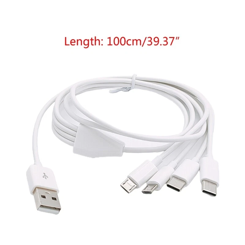 Features: Multi Charging Cable USB C 4-in-1 Charging Cable Design, With Micro USB, USB C connectors; Compatible for most phone devices, solves different ports adapters and various electronic devices. 100cm/39.37in multiple phone charging cable enable you to your phone at ease. Multi usb cable is perfect for home use, office, travel or business, 4 connectors (2 TYPE C ports+2 MICRO ports) only Specifications: Material:Plastic Color:Black,White;(Optional) Length:Approx.100cm/39.37in Package Includes: 1xMulti Charging Cable note: Please allow 1-2cm errors due to manual measurement,please make sure that you do not mind before you order. Due to the difference between different monitors, the picture may not reflect the actual color of the item.