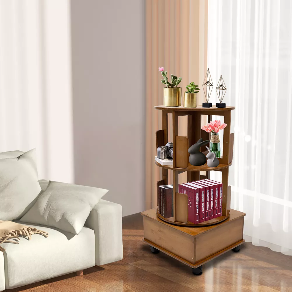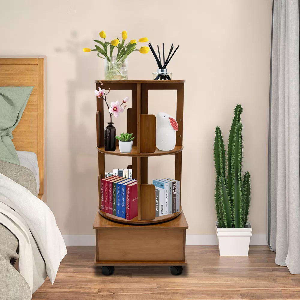 Specification Material: Bamboo Process: Painting Color: Tea Color Shape: Round Assembly Required: Yes Mount Type: Floor Standing Number of Tiers: 2 Number of Compartments: 8 Rotation: 360° Each Tier Bearing Capacity: 15kg/33.07 lbs Tier Height: 27cm/10.6in Base Height: 15cm/5.9in Top Diameter: 40cm/15.7in Overall Size(L*W*H): 41*41*81cm/16.1*16.1*31.9in Package Included 1 * Rotating End Table 1 Pair * Gloves All Accessories for Installation Multi Storage Table, Side Table with Rolling Wheels, Removable Swivel Bookcase Description Are you still worried about having too many books and too much clutter, with nowhere to put them? Multi-layer rotatab le rotating end table can be a n easy solution for you. Multi-layer and large-capacity product can be partitioned and planned, so you can say goodbye to a cluttered life. The design with wheels allows you to place it at will, providing you with higher freedom of use. Key Features Sturdy and Durable: It is made of natural bamboo with a painting process, which has a hard texture, wear resistance and durability, clear grain, dense structure, strong elasticity and toughness, but also is environmentally friendly . Handy Access: The fixable universal wheels on the bottom of the product allow you to push it to any safe position. In addition, the 360° rotating turntable provides you with the possibility of accessing items at multiple angles. Space-saving: With its cylindrical structure and vertical design, this product has a small footprint( 16.1*16.1inches ) and can be placed in all corners to create a tidy space. Strong Load-bearing Capacity: High-quality materials, quadrilateral base, and cylindrical stable structure make the product have up to 33 lbs load capacity per tier, providing more stability for your items to be placed. Storage Assistant: Double-layer structure, eight storage compartments and one drawer can provide you with more diversified storage options. The top panel also provides a separate storage space for your various storage needs . Exquisite Appearance: It is designed in a simple yet sophisticated style that complements a variety of interior decorating styles. Both modern minimalist and traditional Chinese styles can be greatly combined with it. At the same time, the bamboo material itself has a natural and warm aesthetic, so you can enjoy the visual pleasure when you use it. Easy to Clean: The smooth surface, simple construction and removable design of the product make it easy to quickly remove dirt and stains from the surface with a damp rag . Good Customer Service: We stand behind all our guests and look forward to assisting you with your purchase. It is our pleasure to answer your confusion and questions. The end of the story between us is not "we sell and you buy". Details Silent Stainless Steel Turntable: The turntable features a stainless stee l turntable an d steel bearings for stability and durability. Thickened Base: The base is designed with a cabinet (16.1*16.1*5.9in) for load-bearing stability, which is not easy to collapse and not easy to dump shaking. Curved Baffle: Semi-closed baffles make items less likely to fall. Rounded Corners: The rounded corners are carefully polished to care for your skin and avoid scratches during use. Application It can be suitable for any space, such as a living room, bedroom, or study office, as well as shopping malls, hotels, product displays, and so on. Specification Material: Bamboo Process: Painting Color: Tea Color Shape: Round Assembly Required: Yes Mount Type: Floor Standing Number of Tiers: 2 Number of Compartments: 8 Rotation: 360° Each Tier Bearing Capacity: 15kg/33.07 lbs Tier Height: 27cm/10.6in Base Height: 15cm/5.9in Top Diameter: 40cm/15.7in Overall Size(L*W*H): 41*41*81cm/16.1*16.1*31.9in Package Included 1 * Rotating End Table 1 Pair * Gloves All Accessories for Installation Notes Please avoid soaking this product in water and exposing it to sunlight. Please allow the slight color difference caused by the shooting light and the 1-3 cm error due to manual measurement, and make sure you do not mind before ordering. Payment Delivery details Terms of sales About us Contact us Payment We accept ebay payment 。 Fees such as import duties, taxes are not included in the item price or shipping costs. These charges are the buyer's responsibility. Delivery details Shipping: 2-9 working days to: USA Terms of sales We maintain high standards of excellence and strive for hundred percent customer satisfaction. Feedback is very important to us. We hope that you contact us immediately before you give neutral or negative feedback, so that we can address your concerns. It is impossible to address issues if we do not know about them! About us Your satis faction is our ultimate goal. We work hard to earn your trust and future business. Our certified technicians have tested each item before shipping. The unit comes with 1 year limited warranty on all manufacturing defects. a) If you receive a defective item, you may return it or ask for a discount. Please contact us within 14 days after you receive the package. b) What you returned must be intact and in its original packaging as re? u. Customer is responsible for shipping costs of the returned item. c) We will cover the cost of shipping back t with the shipping rate indicated in the registration page. We will send you a new unit or refund the full payment you paid. Thank you. Contact us Business Hour Business Hour: Monday To Friday: 8:30 AM to 5:00 PM (Beijing China time) Due to time zones, our reply to your questions may not be immediately. But within above working time, we will reply your email within 24 hours. If it's non-workdays, please kindly be patient and wait till Monday. Please contact us with ebay message. Please feel free to contact us if you have any questions. Monday To Friday: 8:30 AM to 5:00 PM (Beijing China time) Due to time zones, our reply to your questions may not be immediately. But within above working time, we will r