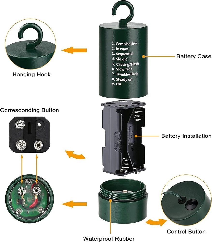 Store New Arrivals Add to Favorite View Feedback Contact Fast deliveries to the customer's home Quality customer service John Make the customers happy! Multi-Color Christmas Lights, 66 Ft 200 LED Battery Operated String Lights Waterproof 8 Modes & Auto Timer Mini Lights for Xmas Decorations, Home, Party, Holiday Decor Outdoor Indoor Description Multi-Color Christmas Lights : Powered by 4*AA battery(not included), press the button on the battery box to switch the xmas lights On/Off and choose 8 different modes to satisfy your diverse needs. Auto Timer & Memory Function: The timer keeps 6 hours "On" and 18 hours "Off" once activated. Free your hands and save energy. Build in Memory chip save your last modes setting and no need to reset mode every day. Waterproof & Easy to install: Outdoor string lights can withstand all kinds of weather, including heavy rain and snow. Hang the battery operated string lights anywhere you like, suitable for indoor and outdoor use. Specification: 200 LED string lights, total length 66ft, lead length 0.98 ft, lamp spacing 3.9in. 8 lighting modes:combination, in waves, sequential, slogs, chasing/flash, slow fade, twinkle/flash, and steady on. Wide Application: Perfect decorations for Christmas, Holiday, Wedding, Party and other celebration occasions, the battery operated string lights can be easily put or hang on trees, windows, doors, fences, etc. Product Description Christmas Lights 66 Ft 200 LED String Lights, 8 Modes, Timer Function for Xmas Decorations Super Bright string lights Ideal light for adding a fantastic and mysterious atmosphere to your backyard, patio, gazebo, lawn, or use as a festoon to celebrate Christmas, Thanksgiving day, party, wedding, graduation in style. Impress your bistro, cafe, or party guests with ambiance. Waterproof Multi-Color Christmas Lights The net string lights are waterproof and designed to withstand light rain or water spills, perfect for outdoor & indoor decoration, but not suitable for heavy rain or snow. Widely Application Multi-Color Christmas string lights Perfect Decoration for Christmas, party, wedding, home, window, shows, hotel, commercial building, shopping center, etc. Easy to Use Easy to Use and Memory Function Easy to use, install 4*AA batteries. Hang the lights anywhere you like, press the button turn it on and set your favorite mode. Timer will keeps 6 hours on /18 hours off each day. What You Get 1 x 200 Led String Lights 1 x Manual Timer & Memory Function&8 Lighting Modes Total Length:66ft (lead length 0.98ft,lamp spacing 0.33ft) LED Qty: 200 Power Supply: 4 * AA battery (NOT INCLUDED) Timer Included: Yes (Repeat 6 hours on and 18 hours off) Applicable area: Indoor & Outdoor Lighting Modes: 8 Modes Wire Color:Green Wire Light Source Type LED Style Traditional Number of Items 1 Power Source Battery Powered Number of Light Sources 200 Control Method Touch Switch Style Push button Theme Holidays Controller Type button Batteries Required? No Material Plastic Seasons winter Package Dimensions 12.05 x 6.69 x 3.27 inches Included Components Energy Efficient Indoor/Outdoor Usage Outdoor Light Color Multicolor Water Resistance Level Waterproof Item Weight 13.4 ounces Occasion Wedding, Christmas Special Features Easy to Install, Waterproof, Weather Resistant, Timer & Memory Special Feature Easy to Install, Waterproof, Weather Resistant, Timer & Memory Color Multicolor Voltage 6 Volts Plug Format Battery ABOUT US We offer the best prices around on high quality products. Our E-store includes media such as books, movies, music and games while offering electronics, toys, sporting apparel, clothing, tools, general home, garden items and more. SHIPPING We are always working hard to ensure your package arrives as soon as possible. Please understand that some factors like weather, high postal traffic, and the performance of shipping companies are outside of our control. We offer free shipping to the lower 48 states and ship within 2 business days of payment, usually sooner. We do not accept P.O. Boxes. Please provide a physical address. For shipping outside of the continental USA, we only use eBay's Global Shipping Program. The item is shipped to KY and then sent to the rest of the world. International customers are responsible for all duties and taxes. Continue to 'check out' to calculate costs for shipping the item to your country. Messages regarding eBay's Global Shipping Program MUST be directed at eBay EXCLUSIVELY. RETURNS We offer a 30-Day Return Policy on items in which you are not completely satisfied with. You have the option of a full-refund or an exchange of the item. No returns are available on items shipped outside of the USA PAYMENT We accept PayPal. CONTACT US This page content is yet to come Please ad us to your favorite seller and visit again later Thank You CUSTOMER SATISFACTION We try our very best to make sure every customer is completely satisfied. If there's a problem, message us! We're happy to help. WE ACCEPT