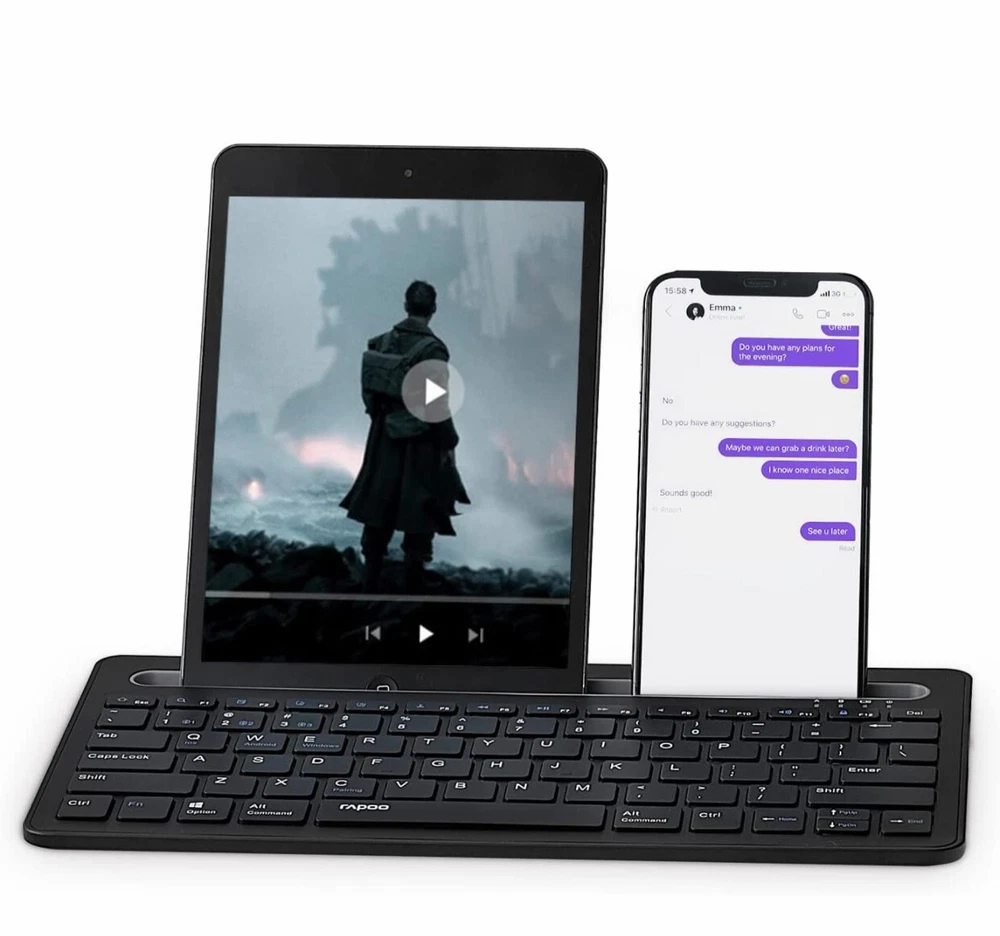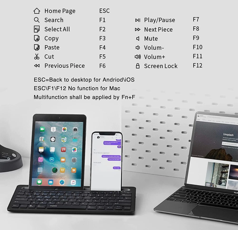 -Brand New -Never Used -Questions: Feel free to ask any Questions - BOX: Never Opened - DESCRIPTION: • Bluetooth 3.0 .0 Wireless 2.4G technology wireless keyboard supports 3 devices, two devices by Bluetooth and the third through 2.4GHz USB dongle. With one keyboard, you can switch devide easily. Please note you cannot control three devices at the same time. Suit for Tablet, Cellphone, PC, Smart TV, Compatible with Windows 7/8/10/XP Vista Linux Mac. The keyboard comes with an integrated card cradle holds your phone or tablet at just the right angle about 110° for you to read while you type. It supports a 9.7-inch iPad horizontally placed. Bluetooth connection technology provides stable signal transmission, three devices can quickly switch between devices through the FN+1/2/3 button. Compact and light, easy to carry, fit for travel or business trip. Multimedia function keys can be quickly switched through FN+F1~F12. Widely Compatible with Cellphone Tablet PC laptop Desktop with Android Windows iOS and Mac OS system. Works on Apple iPad Air, iPad 4 / 3 / 2, iPad Mini 4, iPhone, Galaxy Tab, Macbook, Surface pro & More. Independent chocolate keycaps and silica particles make the fingers evenly stressed, scissor switch keys construction beneath every key enables nice responsive typing. Built-in 280mAh high-energy lithium battery, fully charged in about 2 hours, last for about 93 hours using. Energy-saving design, automatic turns to sleep mode after 10 minutes. - OFFERS: Reasonable offers are considered, LOWBALLERS, Best price and Lowest askers will be ignored -Multi-Device Bluetooth Keyboard, Rechargeable Noiseless Portable Wireless Keyboard Connect to 3 Devices for Tablet Cellphone PC Smart TV, Compatible with Windows 7/8/10/XP Vista Linux Mac