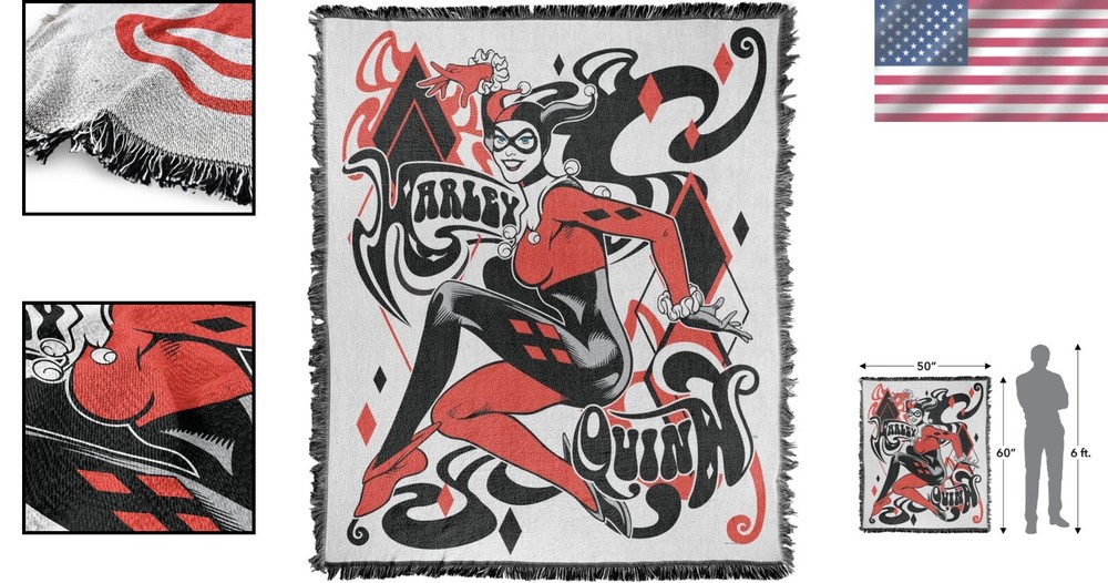 Multi-Use 50" x 60" Harley Throw Blanket – Perfect for Cuddles and Travel ‹ › ‹ › ‹ › ‹ › ‹ › ‹ › ‹ › ‹ › Multi-Use 50" x 60" Harley Throw Blanket Perfect for Cuddles and Travel Introducing our exquisite BATMAN HARLEY AND DIAMONDS WOVEN THROW BLANKET . Measuring a generous 50" x 60", this woven masterpiece features fringed trim and a fabric weight of 530gsm, offering an embrace of warmth and ultimate comfort. Features: Luxurious Texture: Enjoy the softness and warmth of our carefully crafted blend of 60% polyester and 40% cotton. Shrink and Fade Resistant: This throw blanket is designed to withstand the test of time, crafted to resist fading and stains. Vibrant Imagery: Hand-printed in the USA using a specialized dye sublimation process, the colors offer stunning vibrancy. Easy Care: Conveniently machine washable in cold water and tumble dry on low heat. (Note: Wash before first use to minimize lint.) Officially Licensed: Each design is officially licensed, created by talented in-house graphic artists, showcasing unique detailing. Benefits: Generously sized for comfort on beds, couches, or during travel. Perfect gift for fans on birthdays, holidays, and special occasions. Unisex design accommodates all tastes and preferences. Elegantly adds a charming touch to your home decor. Made with care and pride in the USA. Why choose our Multi-Use 50" x 60" Throw Blanket? Wrap yourself in comfort and style with our Multi-Use Harley Throw Blanket. Whether you're snuggled up on the couch, traveling, or decorating your living space, this luxurious blanket combines practicality with a striking design. Gift it to the superhero fan in your life, or indulge yourself with a piece that brings warmth and vivid beauty into any setting. Elevate your comfort and style—order your Harley Throw Blanket today and make every cuddle a little more special! Shipping Free & Fast Shipping - We offer free shipping to most of the USA with a normal delivery time of 3-7 days. However, due to the current situation, additional delivery time (up to 3 weeks) may be required for some items. Alternative Carriers - We may use alternative carriers (e.g. USPS, FedEx, UPS, etc.) to ensure your package arrives safely and on time. Due to the use of multiple carriers, we are unable to provide a tracking number automatically. Handling Time - Orders are processed and shipped within 1-2 business days of receiving cleared payment. Shipping Restrictions - Shipping to Alaska, Hawaii, Puerto Rico, Guam, and other US territories may incur shipping charges or delivery restrictions. Please contact us before ordering, or your order can be refunded/cancelled. State Restrictions - There may be restrictions based on your state of purchase. For example, certain items may not be shipped to California due to state regulations. Contact for Tracking Updates - If you require tracking updates or have any concerns about the delivery of your order, please feel free to contact us, and we will be happy to assist you. Return 30-Day Hassle-Free Returns - We want you to be completely satisfied with your purchase. If you are not, you can return the item within 30 days of receiving it for a full refund or exchange. Easy Return Process - To start a return, simply contact us and we will provide you with a prepaid return shipping label and detailed instructions. Restocking Fee - There are no restocking fees for returns. However, the buyer is responsible for return shipping costs if the return is not due to a seller's error. Refund Processing Time - Refunds will be processed within 5 business days of receiving the returned item in its original condition. Payment We accept all major credit cards, PayPal, and Apple Pay for your convenience. Your payment information is secure and encrypted to ensure a safe and seamless transaction. Please complete your payment within 3 days of purchase to avoid any delays in shipping. Feedback Your feedback is extremely important to us. We strive to provide the best products and customer service possible. If you are satisfied with your purchase, please take a moment to leave us a positive review. If you have any concerns or issues with your order, please contact us before leaving negative feedback. We are committed to resolving any problems and ensuring your satisfaction. Contact Us If you have any questions or concerns, please feel free to reach out to our customer support team. You can contact us through the eBay messaging system. We are available Monday to Friday, 9:00 am to 5:00 pm EST, and we will do our best to respond to your inquiry within 24 hours. Thank you for supporting our small family business! UPC: Not Set Item Length: Batman Blanket Item Width: Batman Blanket Unit Quantity: 2.66 Material: Cotton,Cotton Blend,Polyester Features: Shrink Resistant,Fade Resistant,Stain Resistant,Fringed Trim Theme: Space Character: Not Set Care Instructions: Machine Wash,Tumble Dry Department: Adults Room: Bedroom,Living Room,Office Labels & Certifications: Not Set Brand: Unbranded Size: 50" x 60" Type: Throw Blanket Character Family: Not Set Color: Harley and Diamonds Pattern: Print Style: Modern MPN: Not Set Country/Region of Manufacture: Not Set Insulation: All Seasons Shape: Rectangular Closure Type: No Closure Product Line: Not Set Drop Length: Not Set GSM (Grams per Square Meter): Over 800 Model: Not Set Thread Count: 201-400 Unit Type: lb Personalize: Not Set