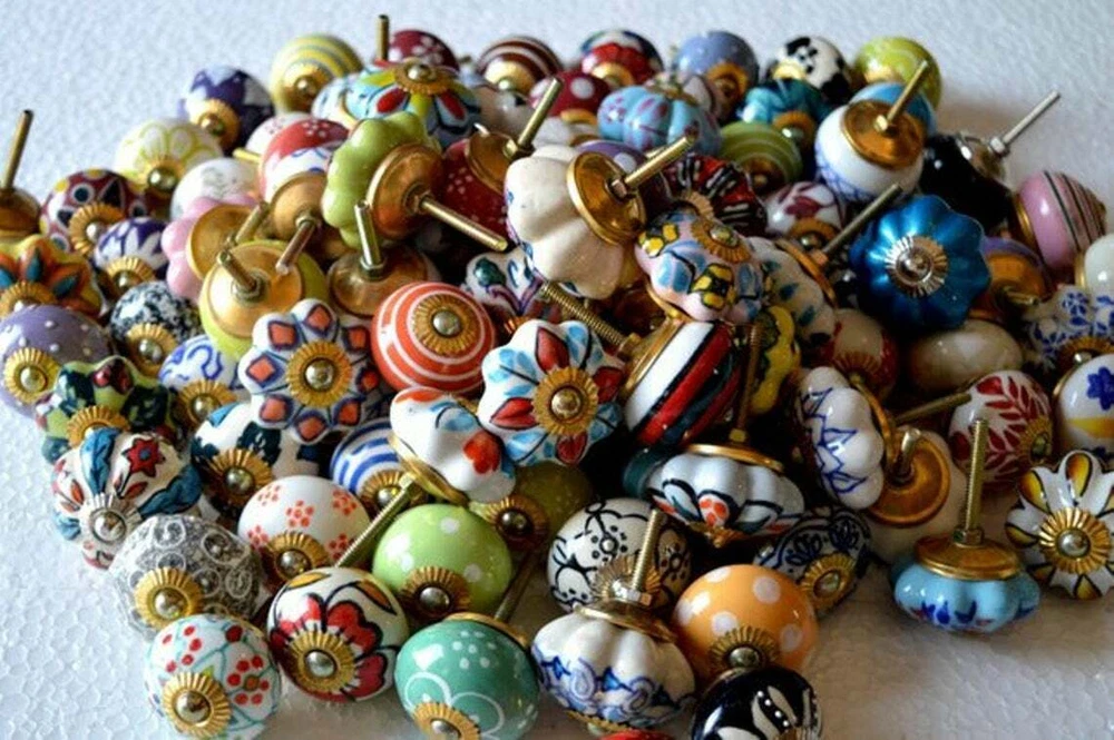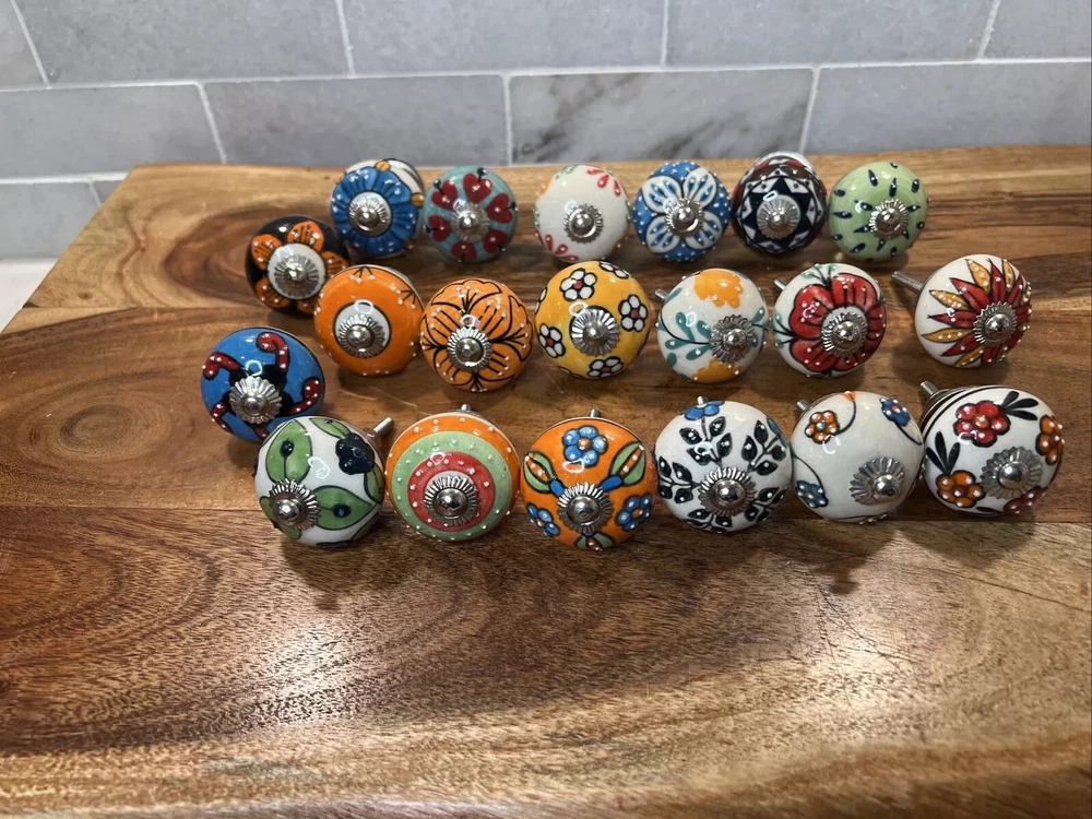 WELCOME TO JAIPUR ART Ceramic Door Knobs Kitchen Furniture Cabinet Cupboard Drawer Handle Multi Color !! Item Specification!! Material: Ceramic Color: Multi Color And Assorted Design Size: Length of knob including screw : 2.6 inch Diameter of knob : 1.7 inch Color: multi Color and Assorted Designs Shape: Round Theme: Art. Country/ Region of Manufacture: India New: A brand-new, unused and undamaged item that is fully operational and functions as intended. Usage: Ceramic Door Knobs Kitchen Furniture Cabinet Cupboard Drawer Handle Multi Color ~~ Shipping Policy~~ 1. We Ship Within 2-3 Business Days After Receiving Order/ Payment. 2. Country's Custom Duties, Taxes & Charges are to be paid by buyer if there are any. ~~ Return Policy ~~ 1. Returns Accepted From Buyers Within 30 Days of Delivery. 2. Shipping Charges will be made by Buyers When Return. ~~ Our Products~~ We are also selling Tapestry, Curtains, Pillows, Bedshhet, Duvet Cover, Kantha, Women Nighty, and Many Home decor Items and many more under Home Decor Category. Our aim is delivering 100% customer satisfaction. We ship the product after performing the high quality check. After receiving products please move to give us positive feedback. Your feedback is valuable for us in next selling. In case of any issue please give one chance to us. And don't go directly for negative feedback. We will delivers you 100 % solution as possible and resolve your problem. ~~ Thank You. Have A Nice Day. ~~