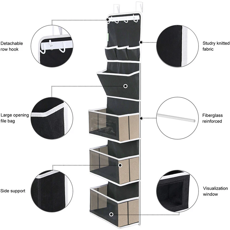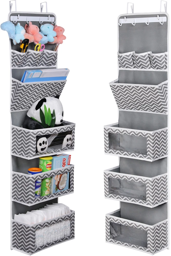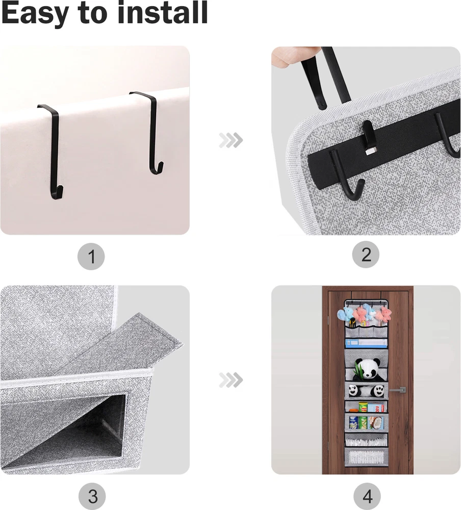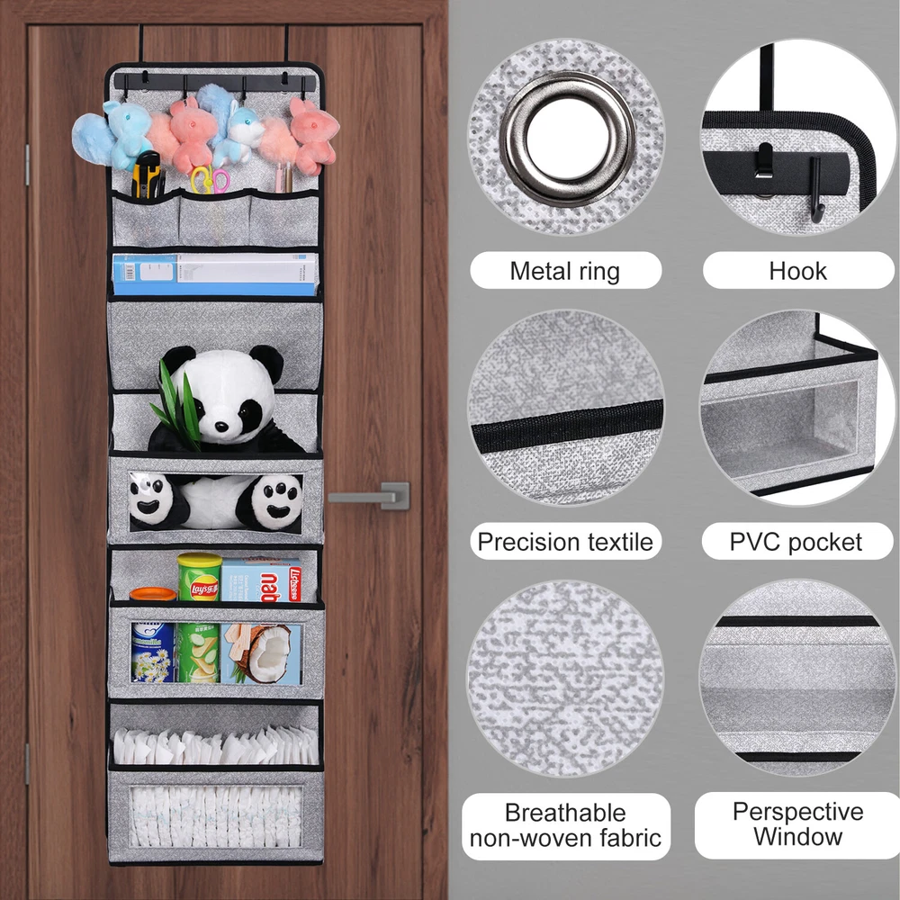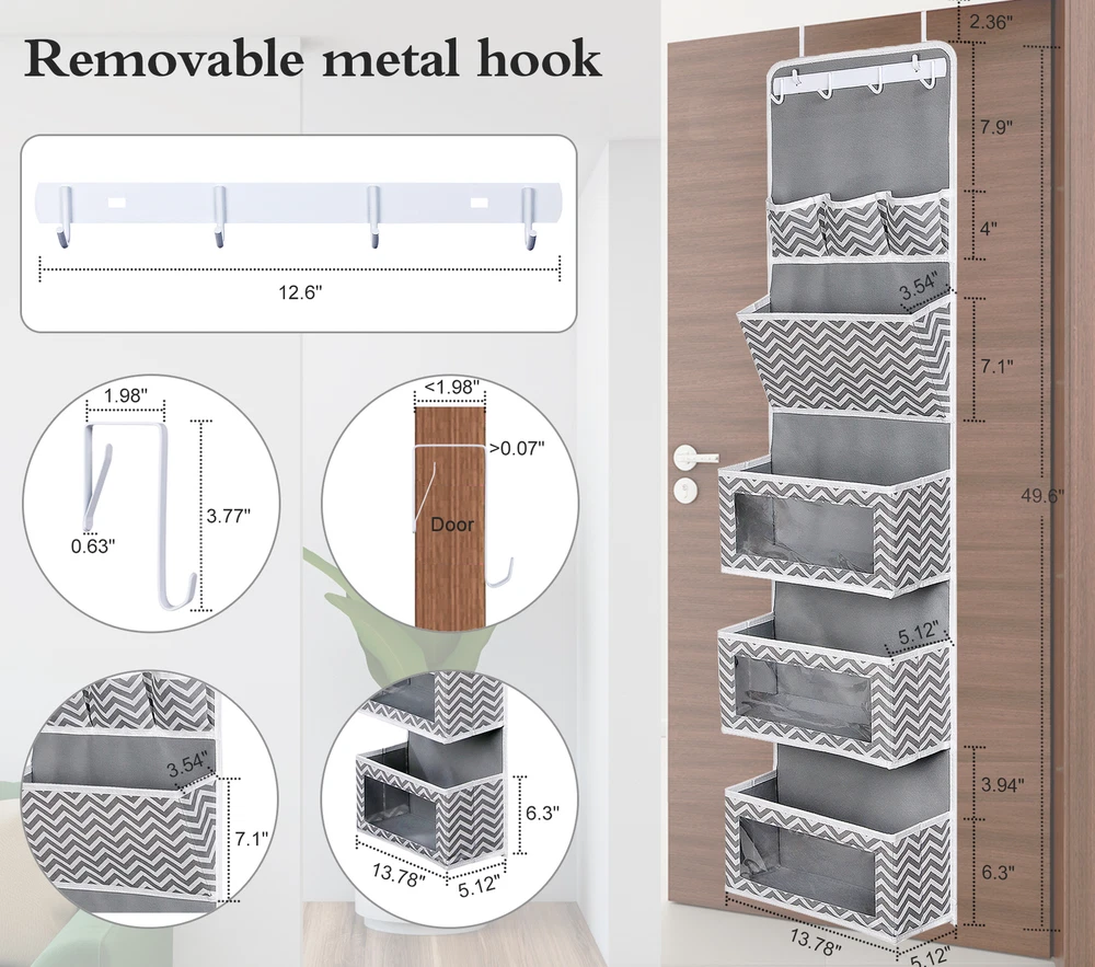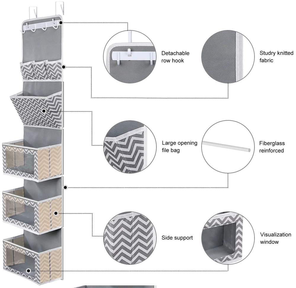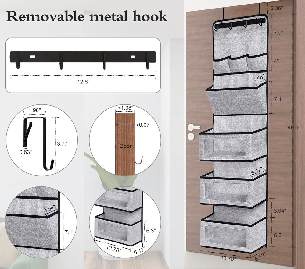 Multifunction Over The Door Hanging Organizer with Large Pockets and Metal Hooks