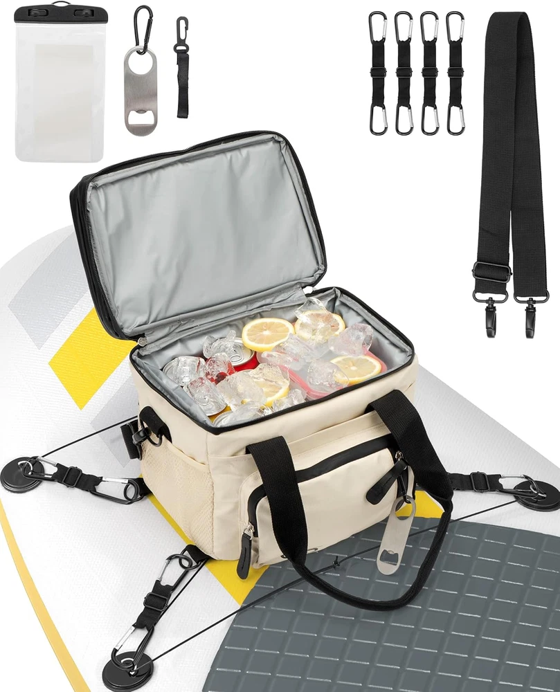 Paddle Board Cooler 11"X8" Multifunctional Kayak Cooler SUP Board Bag Waterproof Enjoy Peace of Mind: Our waterproof cooler for paddleboarding ensures your beverages stay cool, letting you focus on the water ahead. All-Inclusive Convenience: Discover our waterproof cooler for paddleboarding, complete with essential accessories tailored for paddle boards, ensuring you're fully equipped for your water adventures. Stay Hydrated, Stay Balanced: With our coolers, accessories, and beverage holders, you can maintain hydration without disrupting your paddle boarding rhythm. Organize Effortlessly: Our paddle board bag simplifies storage, allowing you to carry essentials securely while you navigate the waves. Versatile Gear for Every Adventure: Equip yourself with gear designed for paddleboarding, kayaking, stand-up paddling, and escapades, ensuring you're prepared for any excursion. Product Description Chamber Width 8 Inches Capacity 1 Pounds Color Khaki Included Components function(f) {var _np=(window.P._namespace("DetailPageProductOverviewTemplatesJava"));if(_np.guardFatal){_np.guardFatal(f)(_np);}else{f(_np);}}(function(P) { P.when('A').execute(function(A){ A.on('a:truncate:po-attribute-truncate-6:updated', function(data) { var isTruncated = !data.truncateInstance.getIfTextFits(); var seeMoreElement = document.getElementById('po-attribute-see-more-id-6'); if(seeMoreElement) { seeMoreElement.style.display = isTruncated ? '' : 'none'; } }) }); })); Adjustable Shoulder Strap, Waterproof phone case, Stronger Carabiner with Adjustable Straps, Bottle Opener See more Material Polyester Water Resistance Level Waterproof Package Weight 0.86 Kilograms Global Trade Identification Number 00198168167953 Insulation Material Polystyrene Foam" or "Polyethylene" or "Polyurethane" or "Polyurethane Foam Model Name Paddle Board Cooler Chamber Depth 11 Inches Package Information Bag Size Large Special Feature Adjustable Strap, Compact, Accessory Pocket, Insulated Product Care Instructions Hand wash with mild soap, air dry. Item Package Dimensions L x W x H 13.46 x 9.41 x 4.21 inches Complimentary Shipping and Easy Returns Need to return something? Enjoy our 30-day hassle-free return policy! Take advantage of free shipping across all 48 contiguous states! Your order will be dispatched within 1-2 business days once payment is confirmed. Your Opinion Matters! Your happiness is our main goal! We welcome your feedback! If you encounter any problems, reach out to us right away, and we’ll be here to help. Explore the Extraordinary! Our collection showcases fascinating products that are sure to capture your attention. What surprises await you? Delve in and discover unique items that enrich your daily life. Don't miss the amazing things we have in store for you!