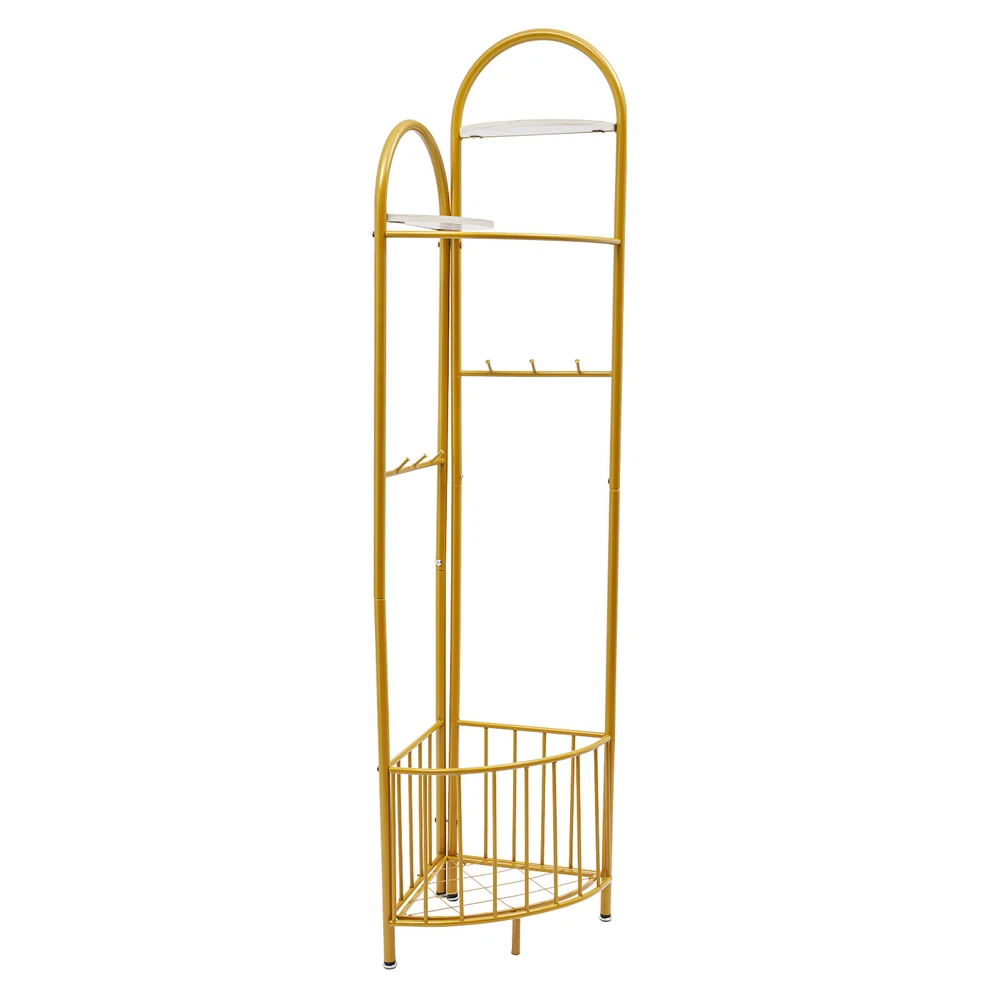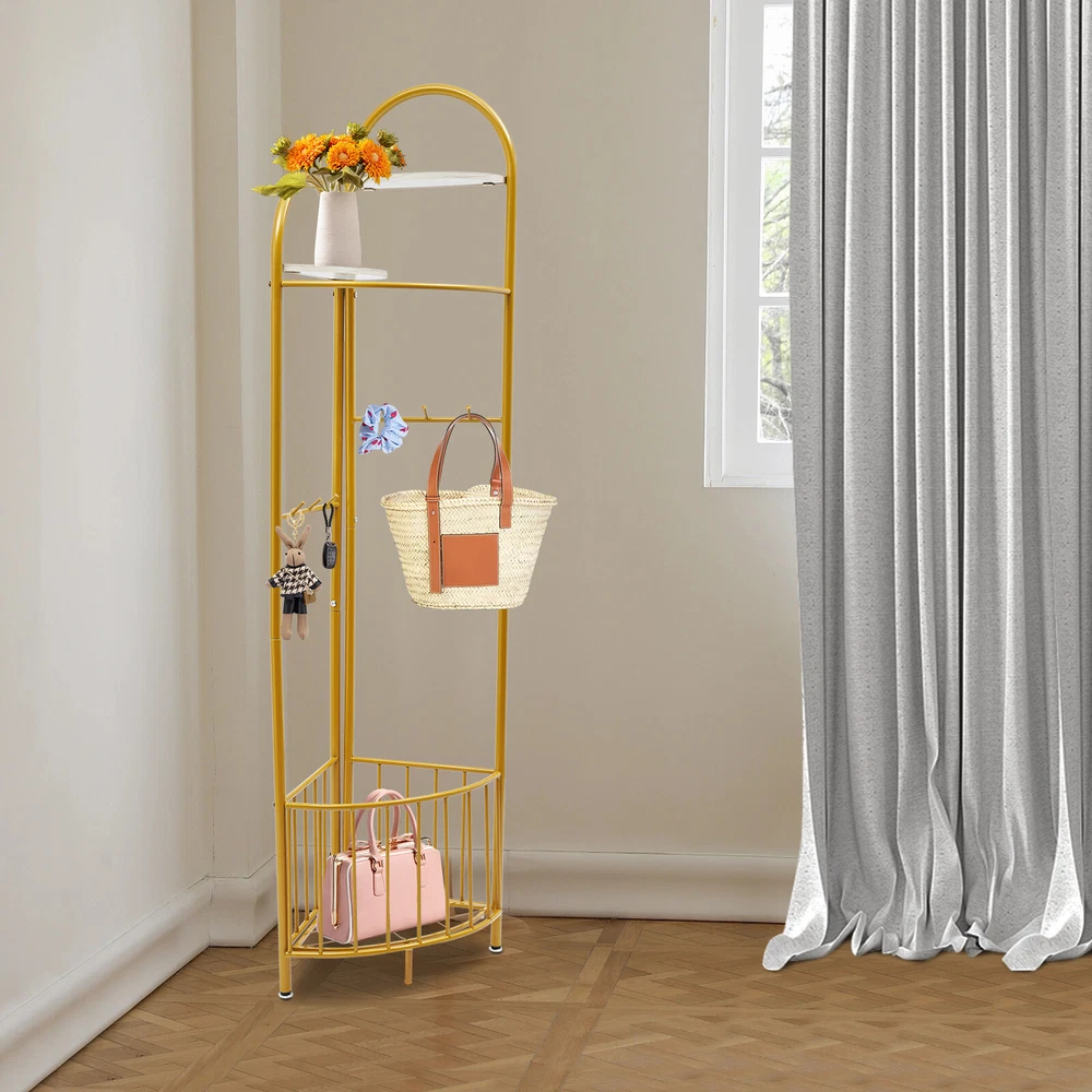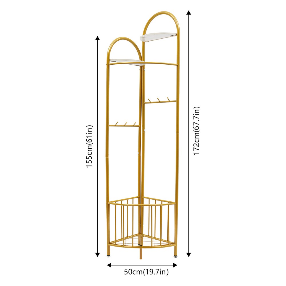 Specification Color: Golden Style: Modern Material: Iron Process: Spray Painting Assembly Required: Yes Number of Hooks: 6 Number of Plates: 2 Mount Type: Free Standing Total Load-bearing Capacity: About 30kg/66.14lbs Product Size(L*H): 50*172cm/19.7*67.7in Package Size: 92*37*11cm/36.22*14.57*4.33in Gross Weight: 4.5kg/9.92lbs Net Weight: 4kg/8.82lbs Package Included 1* Corner Coat Rack All Accessories for Installation Multifunctional Corner Clothing Rack Coat & Hat Rack Holder With Storage Basket Description Description A great coat rack is not only a caring steward for your clothes, but also an artistic accent to your home life. High-quality materials and exquisite craftsmanship make our corner coat rack sturdy and durable. The strong load-bearing capacity allows you to use it with confidence. With its fashionable appearance, it can embellish your room. In short, it is your storage assistant, creating a tidy home environment for you. Key Features Sturdy and Durable: Made of iron with a spray painting process, this product is wear-resistant , corrosion-resistant , and sturdy, ensuring your long-term use. Storage Assistant: The top two partitions allow you to place perfume, potted plants, and handicrafts(all are not included). The storage basket at the bottom can be used to store your clothes, shoes, or umbrellas(all are not included). 6 hooks with round ends allow you to hang scarves, keys, bags, and hats(all are not included). The curved clothes hanging pole can hang clothes, allowing you to store your clothes and items in zones. Strong Load-bearing Capacity: The thickened iron pipe and triangular structure make this product capable of bearing about 66.14 lbs, allowing you to use it with confidence. Space-Saving: It adopts a 90-degree corner design, which fits the wall corner and saves space. Fashionable Appearance: The top two fan-shaped designs with different heights, golden color tones, and smooth lines give this product a fashionable appearance, adding personality and beauty to your room, and creating a fashionable corner space design. Assembly in a Breeze: The simple structure and complete accessories allow you to easily and quickly assemble this product, saving time and effort. Effortless Cleaning: Thanks to the smooth surface, simple structure, and open design, you can easily wipe off the dirt on it with a soft cloth. Protective Package: To prevent the product from being damaged during transportation, we packed it with bubble bags to protect your products to the maximum extent possible. Good Customer Service: We stand behind all our guests and look forward to assisting you with your purchase. It is our pleasure to answer your confusion and questions. The end of the story between us is not "we sell and you buy". Details Open Frame: It facilitates accessing and placing clothes and items. Adjustable Foot Pads : 4 foot pads can be adjusted to adapt to uneven ground. Elevated Bottom: It makes it convenient for you to clean the bottom. Smooth Edge: The rounded and smooth edges not only add to the aesthetics of the product but also improve the safety of use. Application It can be used in hallways, bedrooms, living rooms, bathrooms, entryways, foyers, study rooms, laundry rooms, offices, clothing stores, apartments, hotels, dormitories, etc. It can be used to hang coats, scarves, keys, hats, school bags, handbags, wallets, suits, etc. It can be used to store clothes, shoes, or umbrellas, and can be used to place perfume, potted plants, handicrafts, etc. Specification Color: Golden Style: Modern Material: Iron Process: Spray Painting Assembly Required: Yes Number of Hooks: 6 Number of Plates: 2 Mount Type: Free Standing Total Load-bearing Capacity: About 30kg/66.14lbs Product Size(L*H): 50*172cm/19.7*67.7in Package Size: 92*37*11cm/36.22*14.57*4.33in Gross Weight: 4.5kg/9.92lbs Net Weight: 4kg/8.82lbs Package Included 1* Corner Coat Rack All Accessories for Installation Notes This product does not include other items. Please use this product within the load-bearing range. Please allow the slight color difference caused by the shooting light and the 1-3 cm error due to manual measurement, and make sure you do not mind before ordering. Payment Delivery details Terms of sales About us Contact us Payment We accept ebay payment 。 Fees such as import duties, taxes are not included in the item price or shipping costs. These charges are the buyer's responsibility. Delivery details Shipping: 2-9 working days to: USA Terms of sales We maintain high standards of excellence and strive for hundred percent customer satisfaction. Feedback is very important to us. We hope that you contact us immediately before you give neutral or negative feedback, so that we can address your concerns. It is impossible to address issues if we do not know about them! About us Your satis faction is our ultimate goal. We work hard to earn your trust and future business. Our certified technicians have tested each item before shipping. The unit comes with 1 year limited warranty on all manufacturing defects. a) If you receive a defective item, you may return it or ask for a discount. Please contact us within 14 days after you receive the package. b) What you returned must be intact and in its original packaging as re? u. Customer is responsible for shipping costs of the returned item. c) We will cover the cost of shipping back t with the shipping rate indicated in the registration page. We will send you a new unit or refund the full payment you paid. Thank you. Contact us Business Hour Business Hour: Monday To Friday: 8:30 AM to 5:00 PM (Beijing China time) Due to time zones, our reply to your questions may not be immediately. But within above working time, we will reply your email within 24 hours. If it's non-workdays, please kindly be patient and wait till Monday. Please contact us with ebay message. Please feel free to contact us if you have any questions. Monday To Friday: 8:30 AM to 5:00 PM (Beijing China time) Due t