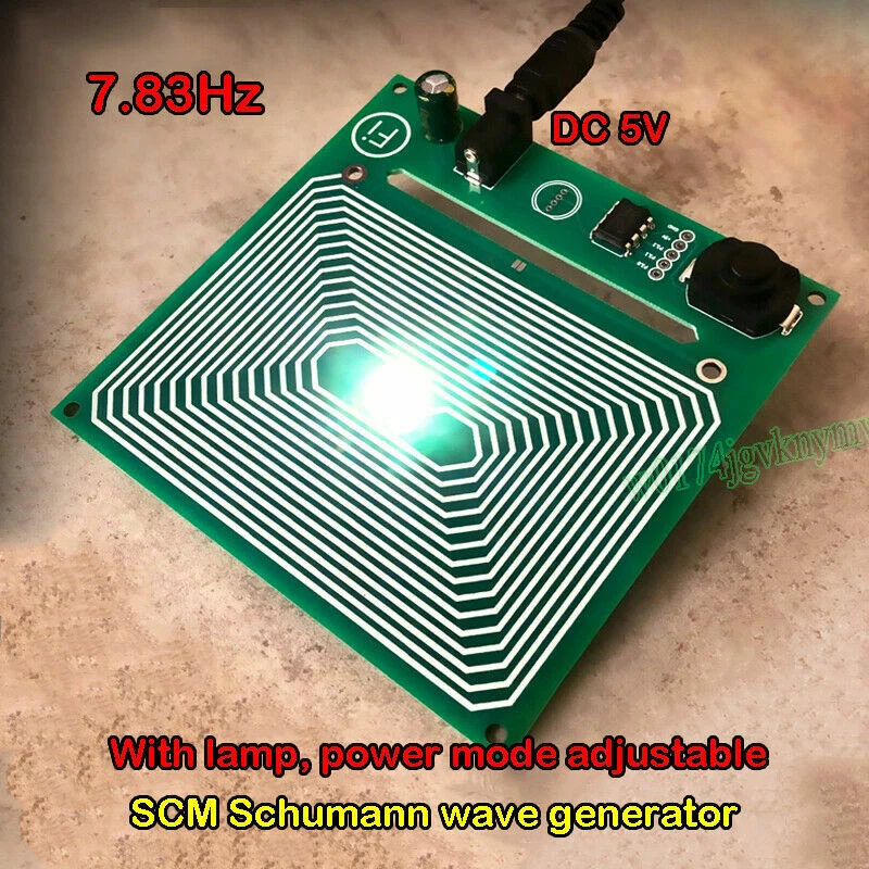 Multi-mode Switched 7.83Hz Schumann Wave Frequency Pulse Generator Description : The product prototype is a wireless power transmission experiment board (the transmitting antenna completely imitates the US S-DYG transmitter), which is changed to the STC main control single-chip 7.83Hz Schumann frequency output, equipped with LED flashing with frequency, and the 4 mode buttons can be switched! The antenna drawings of this product completely imitate the S-DYG transmitter of the United States.The electromagnetic field emission range is wide.The original complex analog circuit is directly written into the STC microprocessor through the program code.The highly integrated digital circuit technology combines the classic complex analog circuit Optimization, not only supports one-click switching of more advanced power modes, but also further improves its stability and resists signal crosstalk; Instructions : Take out the USB cable presented by the product, connect the round hole end to the circuit board, and plug the USB end into the charging treasure or USB charging head or other USB power supply equipment to work; a variety of working modes can be switched by the button: standby mode, high power transmission Mode, low power transmission mode, lighting mode; Specifications and parameters : Circuit Board Size: 10 * 10cm Power Supply Interface: DC 5.5 * 2.1 Power Supply Voltage: 5V Rated Power Consumption: <1W Frequency: 7.83Hz Note: This product does not have a transparent plastic shell, and the photos are shipped in kind. Package Included : 1 x 7.83HZ Schumann Wave Generator 1 x 5V DC Power USB Cable