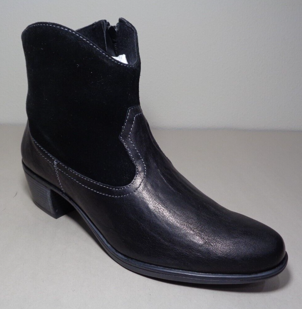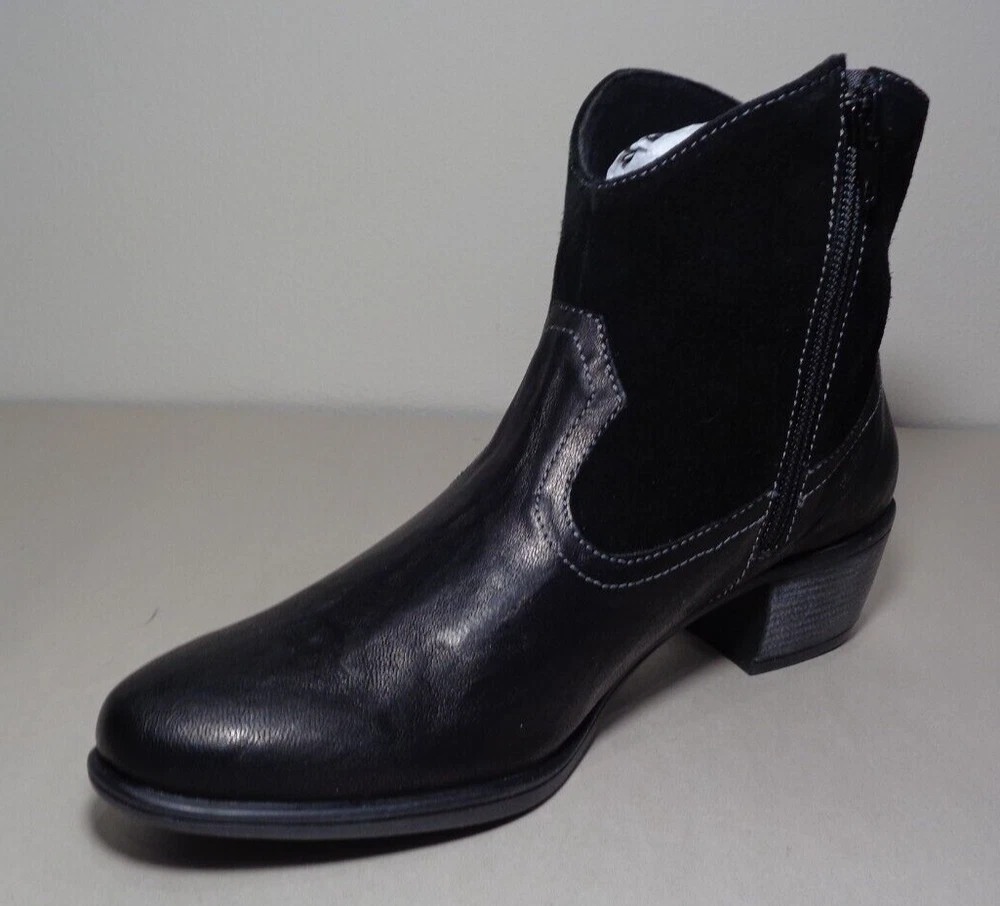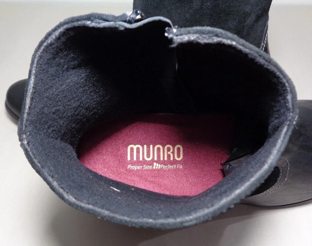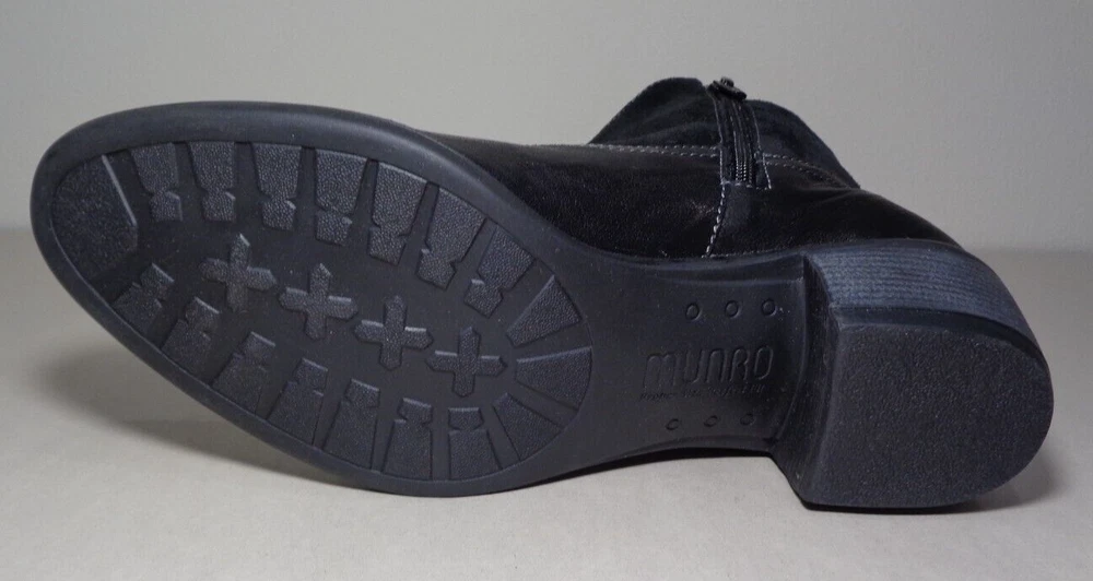 Munro Size 7.5 M LARAMIE Black Leather Suede Ankle Boots New Womens Shoes New with box Style: LARAMIE, M602788 Color: Black Width: Medium Premium leather and suede uppers Soft and breathable textile lining Durable man made outsole Medial side zipper for easy on and off Offers cushioned footbed for added comfort Stylish stacked heel Munro offers: Shock Absorbing Outsoles, Removable Footbeds, Anatomically Molded Insoles, Riveted Steel Shanks Weight per boot 11 oz Heel height 1.75 inches Shaft height 5 inches Top to bottom 6.75 inches