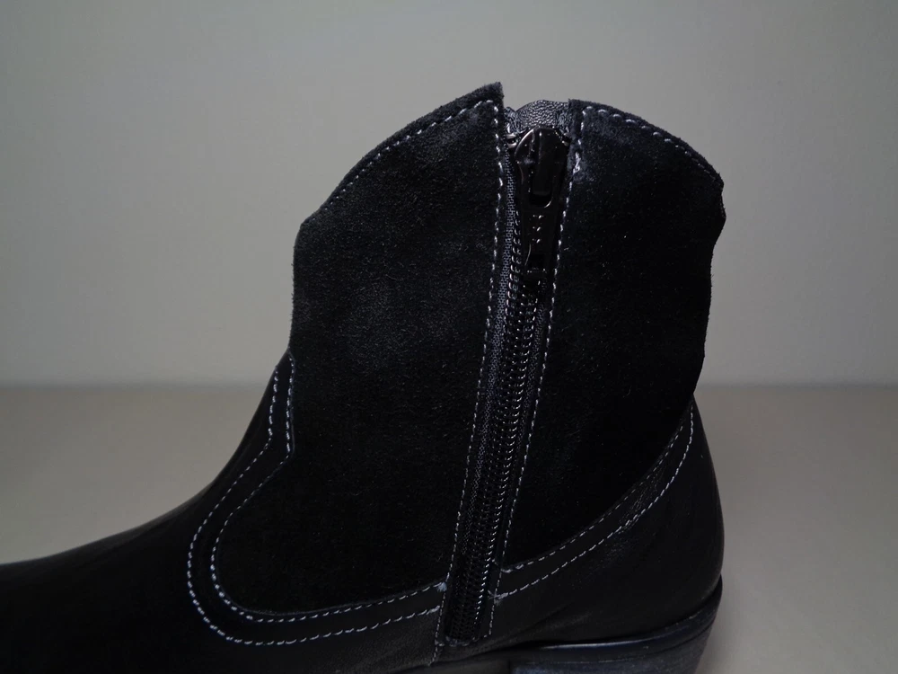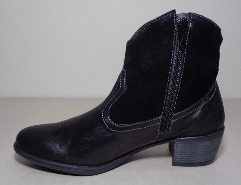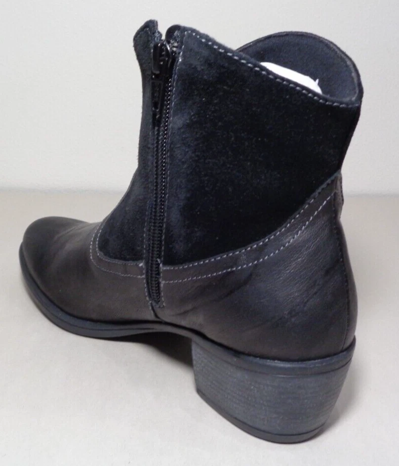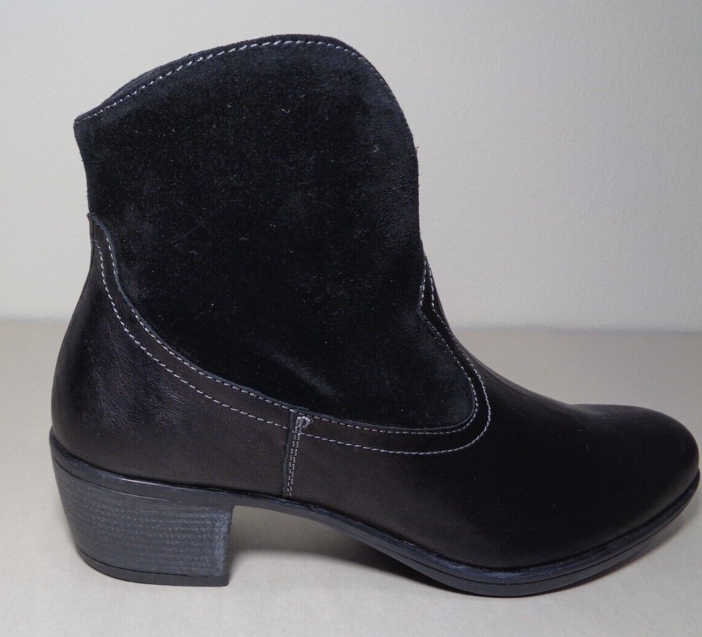Munro Size 7.5 M LARAMIE Black Leather Suede Ankle Boots New Womens Shoes New with box Style: LARAMIE, M602788 Color: Black Width: Medium Premium leather and suede uppers Soft and breathable textile lining Durable man made outsole Medial side zipper for easy on and off Offers cushioned footbed for added comfort Stylish stacked heel Munro offers: Shock Absorbing Outsoles, Removable Footbeds, Anatomically Molded Insoles, Riveted Steel Shanks Weight per boot 11 oz Heel height 1.75 inches Shaft height 5 inches Top to bottom 6.75 inches
