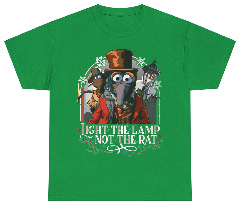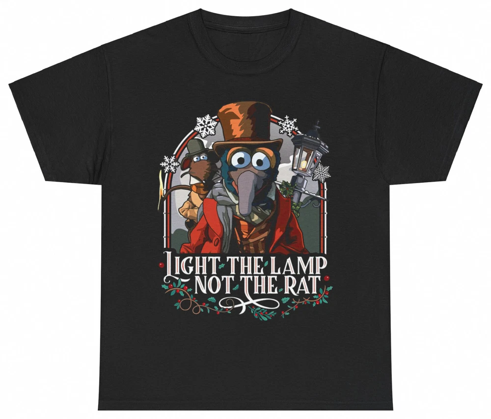 Vintage: Yes Size: S-5XL Type: T-Shirt Brand: Gildan Fit: Regular Pattern: Graphic Print Country/Region of Manufacture: United States Size Type: Regular Material: Cotton, 100% Cotton Sleeve Length: Short Sleeve Features: All Seasons Theme: 80s, 90s, Christmas, Funny, Movie, Retro, Gift, Happy Christmas, Merry Christmas, Santa Claus, Vintage, Winter, X-Mas, XMAS, Carol Gonzo Rizzo, Light The Lamp Not The Rat Neckline: Crew Neck Department: Unisex Adults