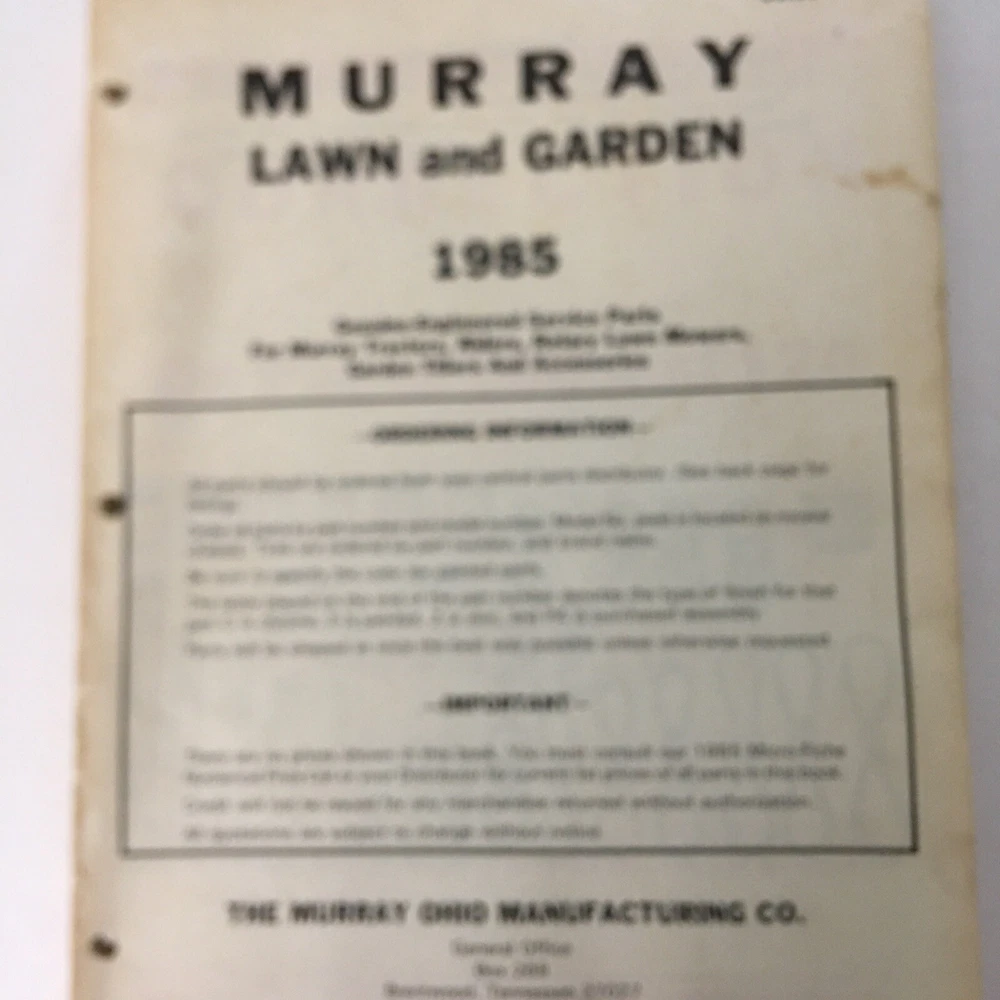 The Murray 1985 Lawn & Garden Parts Manual is a manual that provides detailed information on parts for lawn and garden equipment manufactured by Murray in the year 1985. It falls under the category of Lawn Mower Parts and is specifically designed for those who own or work with Murray lawn and garden machinery. This manual serves as a valuable resource for identifying and understanding the various components of these machines, aiding in maintenance, repairs, and overall upkeep. 278 pages well worn but all pertinent writing easily readable