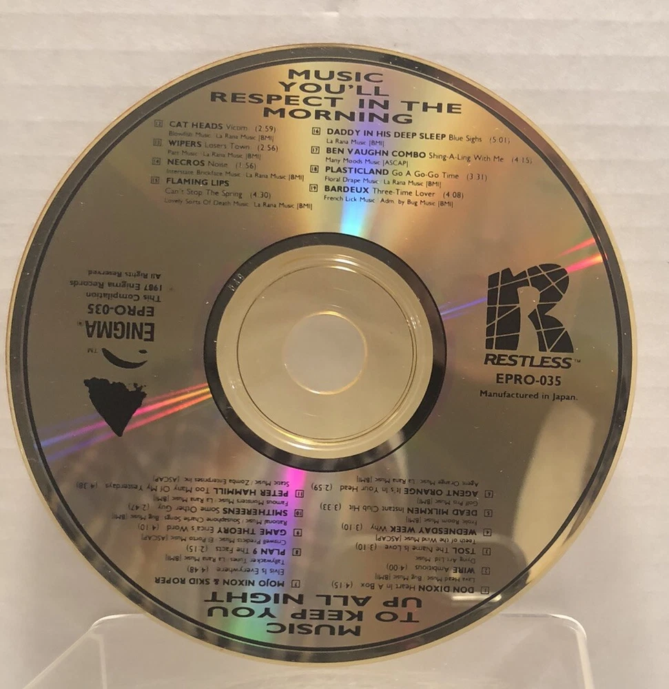 Music To Keep You Up All Night & You'll Respect Morning Enigma 1987 EPRO-035 I have owned this CD since 1987 and played it once...to test. CD has been tested (Nov 13, 2024)...plays like a good CD should. CD and slipcase look so good you'll think it's 1987. Will be shipped boxed. Being sold as is. No Returns. Comes from a smoke free home. What you see pictured is the item you’ll receive. Shipping is calculated based on your location by The USPS (Priority, Ground, or Media). Check out my other auctions! Thanks and Cheers.