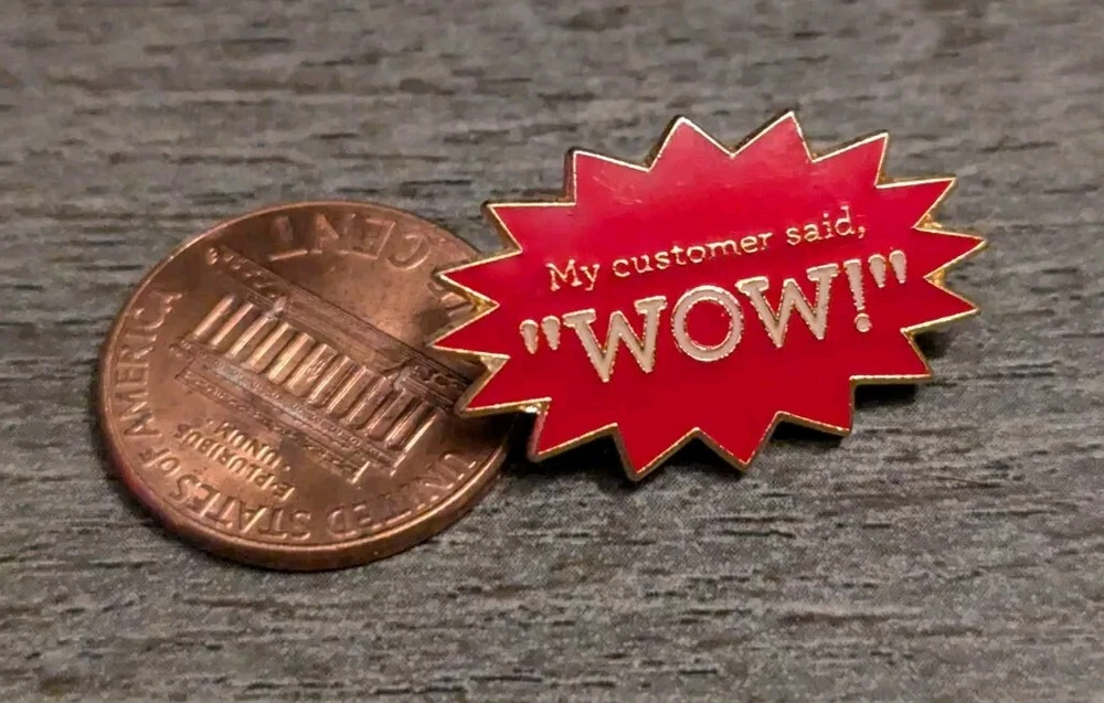 This lapel pin is the perfect way to show your appreciation for a job well done. With its vibrant red color and elegant design, it's a great way to recognize an employee's hard work and dedication. The pin features a unique design that captures the essence of excellent customer service. See photos for details, condition or flaws, and relative size. The pin in the photo is the one that you will receive. Shipping is combined on multiple orders. When purchasing two or more pins, a refund for combined shipping will be issued upon shipment.