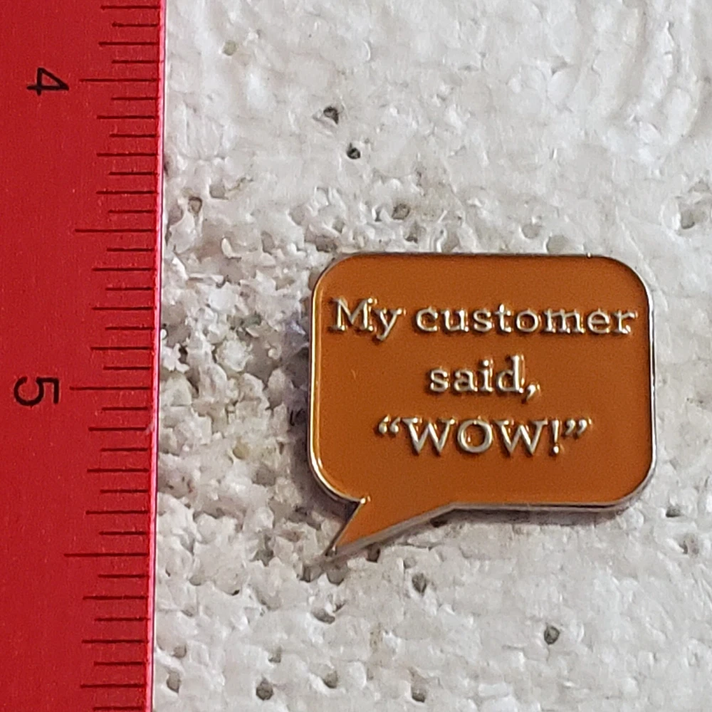 Showcase your appreciation for excellent customer service with this stunning orange lapel pin. The square logo features a vibrant color that catches the eye, making it an excellent accessory for any outfit. The pin is made from high-quality materials, ensuring durability and longevity. Perfect for pin collectors, this unique piece features a "Wow Employee" design that adds a touch of fun and playfulness to any ensemble. Whether you're looking to add a pop of color to your outfit or show your appreciation for exceptional customer service, this lapel pin is an excellent choice.
