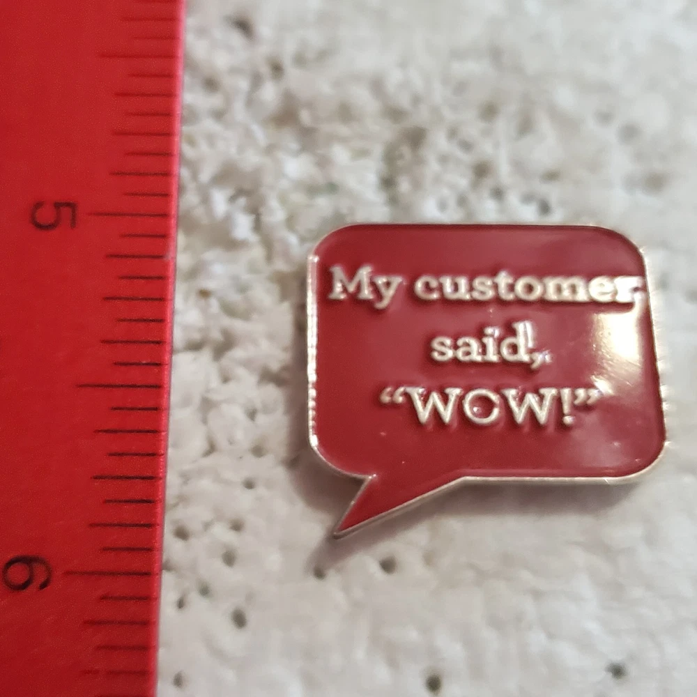 This eye-catching red lapel pin is a must-have accessory for anyone who values great customer service. Show appreciation for your customers with this stylish square bubble pin featuring the words "My Customer Said Wow." Made from high-quality materials, this pin is perfect for any outfit and occasion. It's the ideal gift for employees who go above and beyond in providing exceptional customer service. Add this pin to your collection today and let your customers know that their satisfaction is your top priority.