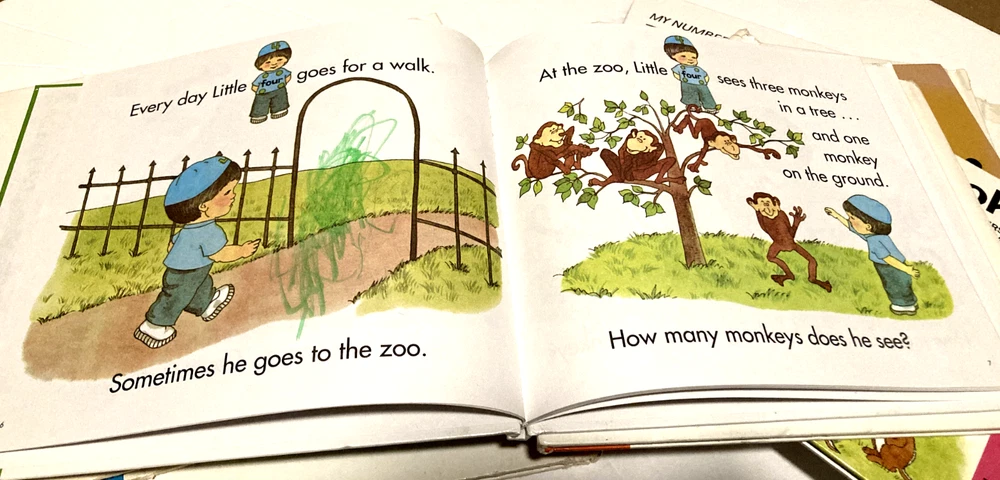This is the complete series of My First Steps to Math- My One Book to My Ten Book. The books are former library books and are used. There is some writing and some scribbling in some of the books. Some books have stains to the inside cover. The binding is loose on a few of the books. Please see pictures for detailed condition.