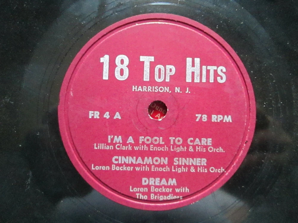 18 Top Hits (note: this is the record label name, there are only 6 songs on this record) My Friend/If You Love Me Really Love Me/Wanted/I'm A Fool To Care/Cinnamon Sinner/ Dream 78 rpm Note: has scuffing PLEASE NOTE THE FOLLOWING: PLEASE PHOTOS FOR CONDITION OF LABELS Condition: all records that I have listed will be from local estates and are used. They are not in mint condition. I have not played or tested any records unless stated above. Each may have scuffing , scratches , dust, fingerprints, wear, fading, tears, writing on label and/or sleeve and other issues . May not have an inner sleeve. Covers may have scuffing, fading, tears, stains and other issues. _________________________________________________________ Please note that I am not a professional grader. I can only provide information about the items' conditions and not about a certain level of grading.