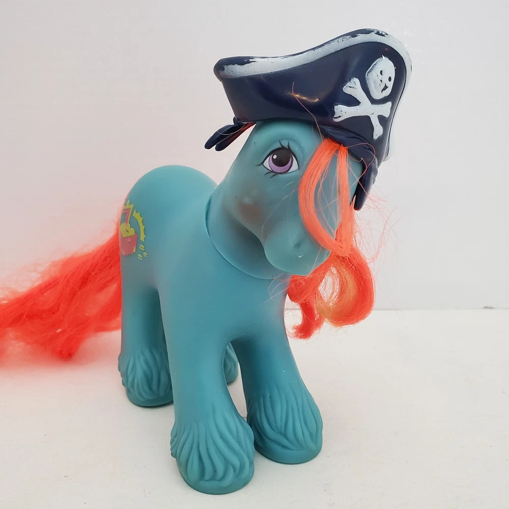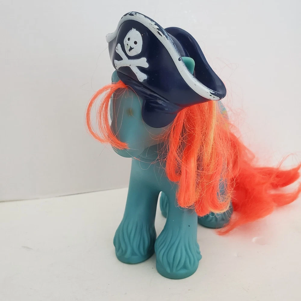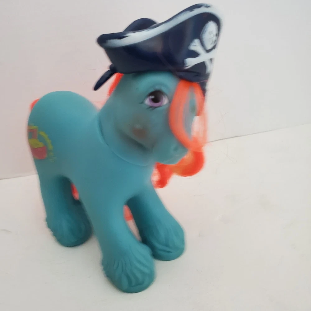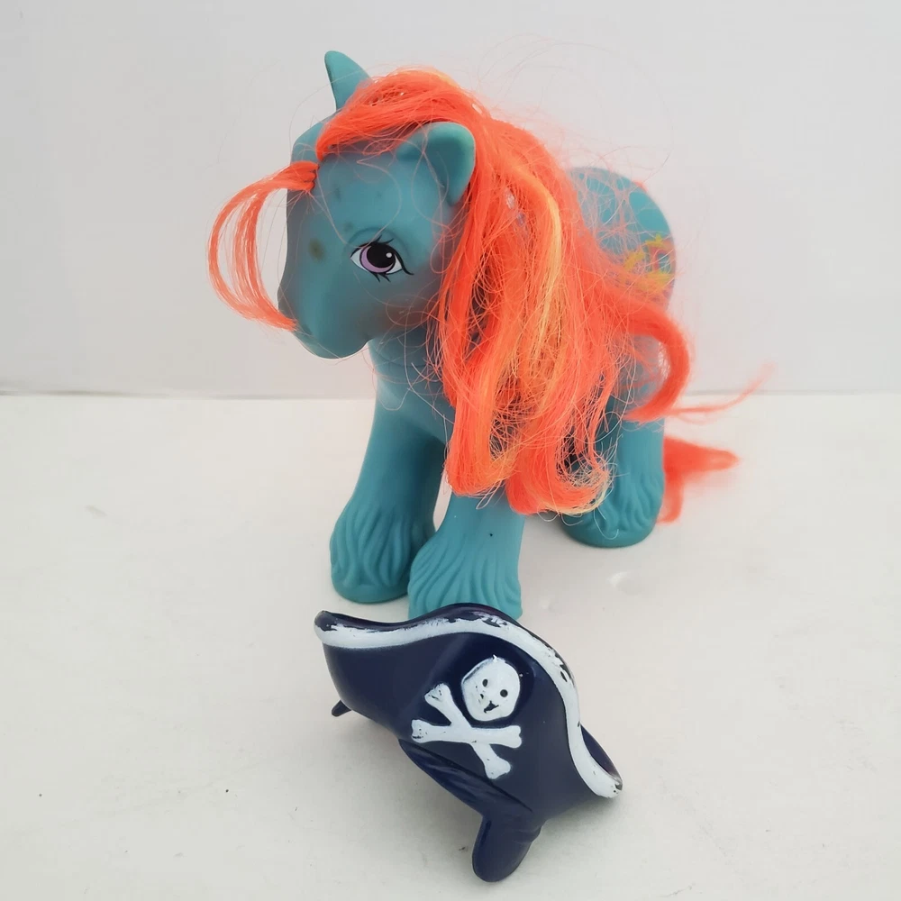 My Little Pony G1 Big Brother Barnacle Pony with Pirate Hat Hasbro 1987 Vintage/Pre-Owned Item showing signs of previous ownership and use. Hair needs some TLC. White design on the pirate hat is worn off in some spots. There's a line on the underside of one foot that might be ink or other. Some discoloration on face. Sold AS-IS/AS-FOUND. Photos show all sides of the pony and top and bottom views. Zoom in on photos as part of the complete description and to assess condition Please message me with any questions or to request additional photos prior to purchasing. Item will be carefully packed and quickly shipped with USPS Priority Mail. At this time, I have a seperate listing for a Lot of 6 Vintage 1980s My Little Ponies (Ebay item n umber: 314889585642 ) . If you purchase from multiple listings, combined shipping is available.