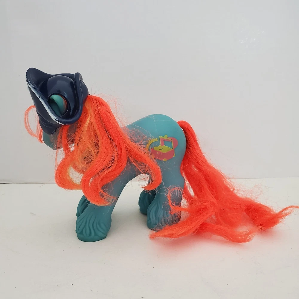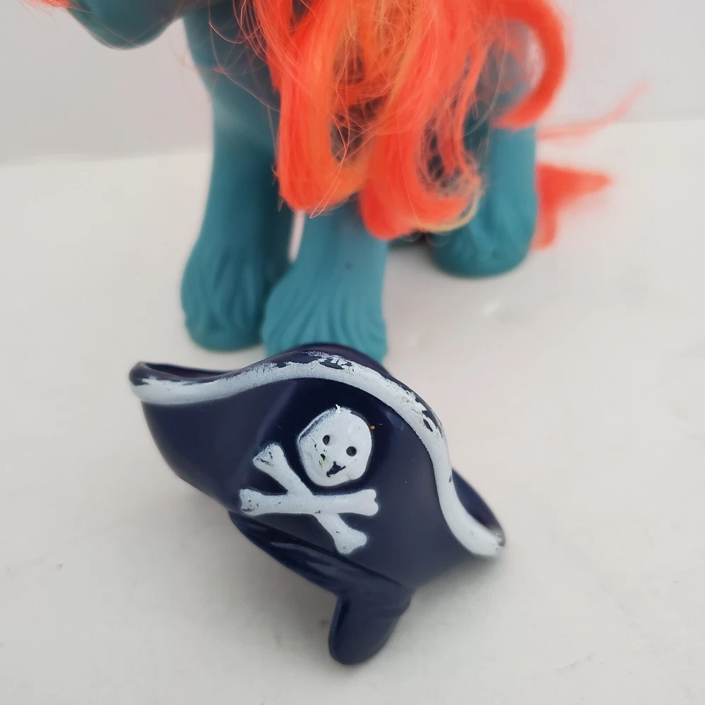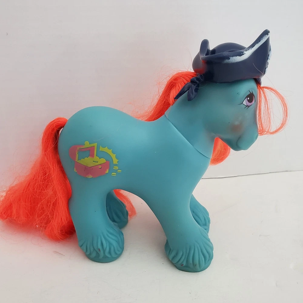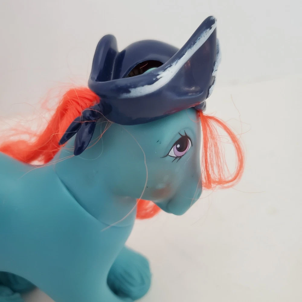 My Little Pony G1 Big Brother Barnacle Pony with Pirate Hat Hasbro 1987 Vintage/Pre-Owned Item showing signs of previous ownership and use. Hair needs some TLC. White design on the pirate hat is worn off in some spots. There's a line on the underside of one foot that might be ink or other. Some discoloration on face. Sold AS-IS/AS-FOUND. Photos show all sides of the pony and top and bottom views. Zoom in on photos as part of the complete description and to assess condition Please message me with any questions or to request additional photos prior to purchasing. Item will be carefully packed and quickly shipped with USPS Priority Mail. At this time, I have a seperate listing for a Lot of 6 Vintage 1980s My Little Ponies (Ebay item n umber: 314889585642 ) . If you purchase from multiple listings, combined shipping is available.