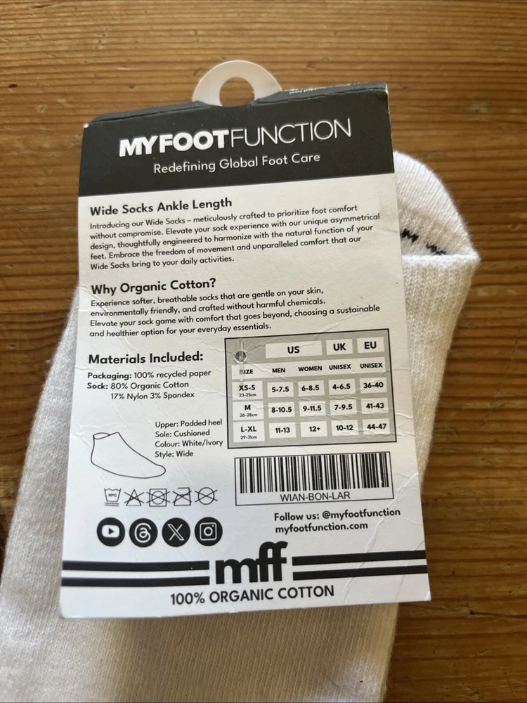 These My Foot Function socks are perfect for those who value comfort and style. Made with high-quality materials, these socks are designed to provide optimal support for your feet. Whether you're running errands or working out, these socks will keep your feet dry and comfortable. With a focus on durability and comfort, these socks are a great choice for anyone looking to upgrade their footwear. Featuring a wide range of sizes and colors, these socks are perfect for any occasion. So why wait? Add these My Foot Function socks to your wardrobe today and experience the ultimate in comfort and style. See pictures for sizing and details