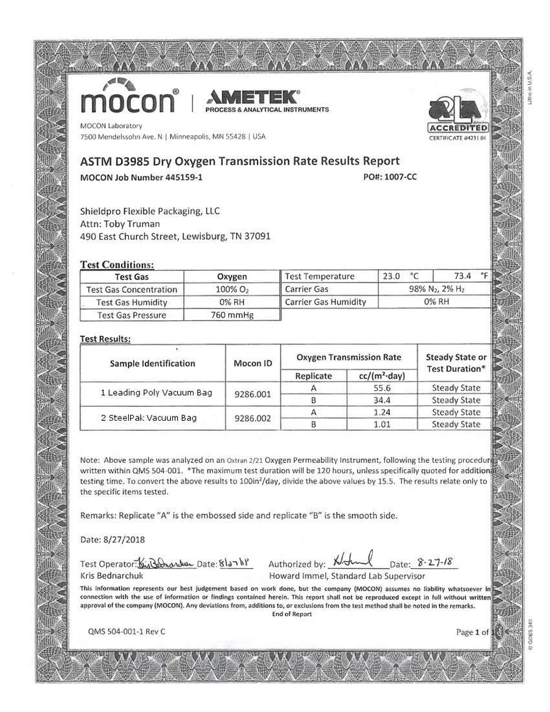 Contains: (1), (2) or (3) Premium 8"x16 Feet or 11"x16 Feet SteelPak Textured Mylar Vacuum Seal Food Storage Rolls Features and Usages Our patented design is the only Mylar aluminum foil rolls that may be used in all major vacuum sealers (as well as other similar vacuum sealers that use rolls) without the need for an attachment or snorkel, allowing you to create custom-sized vacuum seal Mylar food storage bags!. Our first-of-their-kind patent-pending SteelPak Vacuum Seal Rolls combine the benefits of vacuum sealing with the protection of Mylar. SteelPak bags are scientifically proven (see attached MOCON testing data) to be 4500% more effective at blocking oxygen penetration than clear poly/plastic vacuum bags sold by our competitors. SteelPak vacuum rolls/bags have an exclusive textured surface that allow air to be removed during the vacuum cycle. Our Mylar films have extremely low Oxygen Transmission Rates (OTR) and Moisture Transmission rates (MVTR). 4.0 Mylar provides excellent and leakproof performance barrier from oxygen, moisture, vapor, and light intrusion. The ShieldPro Platinum Guarantee ShieldPro is committed to your success, and offers a full money-back guarantee on any product, for any reason. If you have questions, you are welcome to reach out to our food storage experts, and we also include links to online information and frequently asked questions to help you understand the process. VACUUM SEALER COMPATIBLE: Our patented SteelPak metallized roll is the ONLY Mylar roll that works in all major vacuum sealers (without added attachments), as well as all other high-end vacuum sealers allowing you to create customized vacuum seal Mylar bags. CUSTOMIZE LENGTH TO FIT ANY FOOD YOU STORE: Whether you choose our 8 inch rolls or 11 inch rolls, you now have the option to cut the roll to whatever length you need ensuring no more wasted material, while also the proven protection of Mylar storage. SCIENTIFICALLY PROVEN BETTER THAN PLASTIC/POLY VACUUM BAGS: Independent testing (see images on left) demonstrate our SteelPak 4 mil. Mylar bags are scientifically 4500% more effective at blocking oxygen penetration than all leading poly vacuum bags (Yes, even “that” brand!) ENGINEERED FOR FOOD SAFETY AND LONG-TERM STORAGE: Textured on one side and smooth finish on the other to allow for maximum air removal to provide longer refrigerator and freezer storage life and protection from freezer burn than ANY other product you can find. Guaranteed. BETTER PROTECTION, BETTER VALUE: Don’t spend more for less protection – Our patented one of a kind storage bags combine the benefits of vacuum sealing with the protection of Mylar/aluminum foil for the same price as (less reliable) plastic/poly vacuum sealer bags.