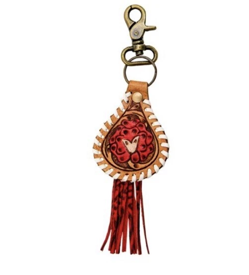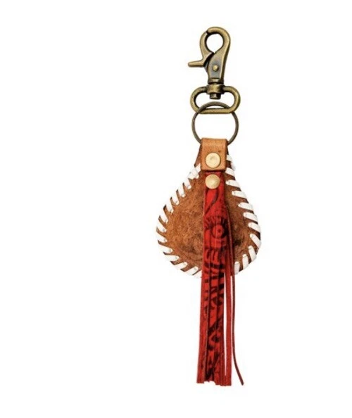 Add some western flair to your keys with this hand-tooled leather key fob from Myra Bag. The multicolor design features a cowboy-inspired theme that's perfect for any fashion-forward woman. Made from high-quality leather, this keyring is durable and long-lasting. It's the perfect accessory for your keys, and it's sure to turn heads wherever you go. Get yours today and add a touch of Myra Bag style to your daily routine. Our yankee key fob is handmade and styled to supplement your fashion. It is a pefect gift for your family, friends or colleagues. Materials LEATHER Item Width 2.75 Length 6