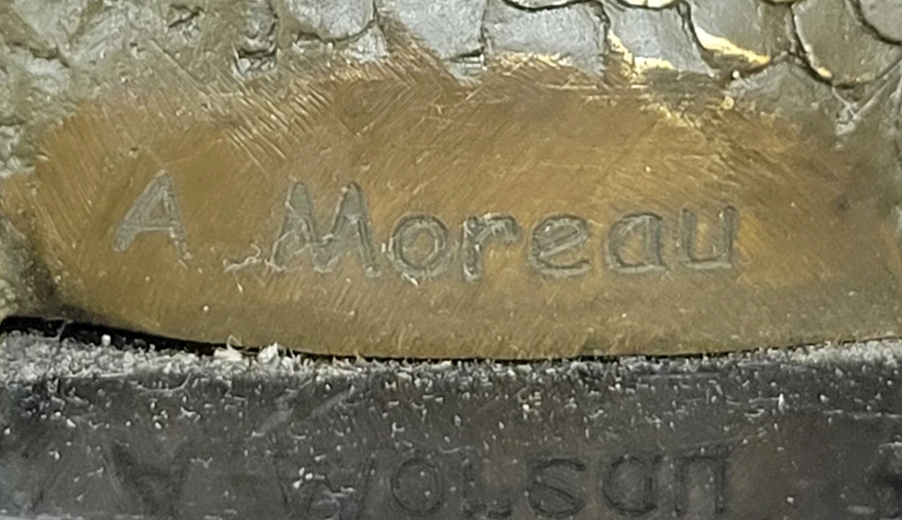 Mythical Athena Bronze Sculpture Statue Standing on Dragon Hand Made Artwork Mythical Athena Bronze Sculpture Statue Standing on Dragon Hand Made Artwork Condition : This sculpture is in perfect condition Bronze Dimensions with Marble Base: Height 10.5" X Width 4.5" Marble Dimensions: Diameter 4.5" Height without base:9.5" Weight:5 LBS Inventory:79GTS0525197 This striking bronze sculpture signed by A. Moreau depicts Athena, the revered Greek goddess of wisdom, war, and strategy, standing triumphantly atop a subdued dragon. Her commanding presence and poised stance reflect divine authority and unshakable confidence. With flowing garments and a focused gaze, Athena is portrayed in classical style, symbolizing strength and intellect prevailing over chaos and beastly forces. Handcrafted using the traditional lost wax casting method, this sculpture is hot cast in genuine bronze and finished with a rich brown patina that accentuates every intricate detail—from the goddess’s armor and robes to the textured scales of the dragon beneath her feet. The craftsmanship honors the mythological heritage while showcasing the artist’s mastery in bringing dynamic scenes to life in bronze. Mounted on a round black marble base, the sculpture exudes elegance and stability, making it a compelling centerpiece in any home, office, or gallery. A powerful tribute to Greek mythology and classical art, this signed work by A. Moreau is both a collectible treasure and an inspiring symbol of wisdom triumphing over adversity. Shipping Terms : Most of our items are shipped via USPS (United States Postal Service) mail or UPS. Most orders are shipped within 24-48 hours of purchase. Please be aware that not all items are available for USPS shipping due to size and weight. We do ship to Hawaii, Alaska, Canada, Puerto Rico, APO/AE, and U.S. Virgin Islands, however, an additional charge may be required. Please contact us before making any purchases in these areas. For Non-USA customers, you may be responsible for all duty, tax, brokerage fees that may be due upon delivery (shipping costs cover freight charges only). We also ship internationally. Please refer to the "Shipping and Handling" chart for the rates for each area. Payment : We accept just about any form of payment. PayPal, Master Card, Visa or American Express credit cards. Money orders, cashiers checks, and even personal or business checks. For governmental institutions, we will also accept a purchase order. Please understand that for personal or business checks we have to wait for the check to clear (usually 7 days) before shipping. Condition : New Detailed Hand Crafted Hot Cast Bronze Satisfaction Guaranteed. This is Stock Photo, Slight Color Variation!! Listing and template services provided by inkFrog