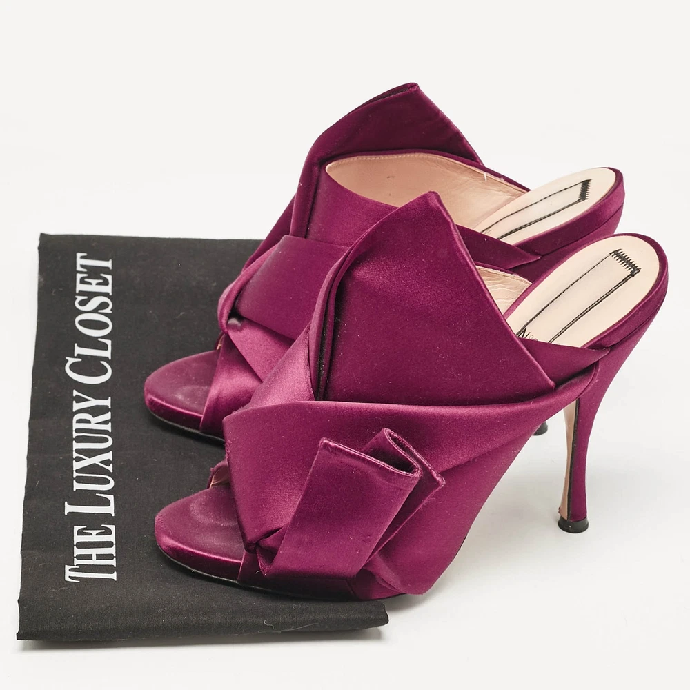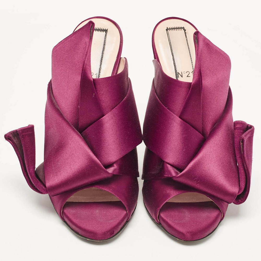 Our eBay Store About Us Contact Us Add to Favorite Sellers Nº21 Burgundy Satin Raso Knot Peep Toe Mules Size 39 Add a touch of luxury to your wardrobe with these Nº21 peep-toe mules in burgundy satin. The signature oversized knot detail with the sleek silhouette and rich hue make these mules a standout option for special occasions. Product Details Brand N21 Color Burgundy Heel Height 13 cm Material Satin Size 39 Certified by The Luxury Closet This item has gone through a detailed authentication process overseen by our experts. We offer a lifetime guarantee of authenticity on all our items. How We Check The in-house team of experts at The Luxury Closet is highly trained to verify the authenticity and the condition of the luxury products. They ensure that only 100% authentic items are put on sale.The evaluation process is unique with its own mix of assessment criteria and differs according to the category. Each item is evaluated based on the following combination of hallmarks, hardware, stitching, symmetry, material, craftsmanship, stamping, codes, hologram stickers, and packaging. Our authenticators also check if the items have been modified or amended (e.g., aftermarket diamonds, replaced batteries, repaired bags, etc.) International Buyers Import duties, taxes and charges are not included in the item price. These charges are the buyers responsibility. Please check with your country’s customs office to determine what these additional cost will be prior to buying.