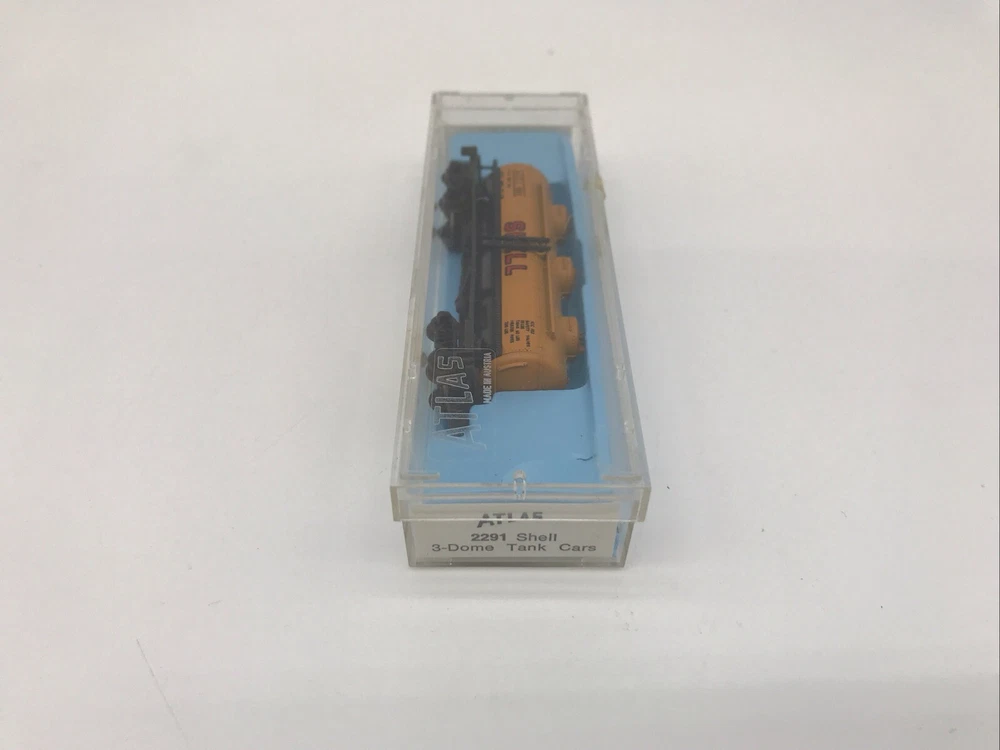 N Scale Atlas 2291 Shell 3-Dome Tank Car w/Rapido Coupler. // We do combine shipping on multiple orders for the continental United States only. We use the Global Shipping Program for everything else, and are unable to combine shipping on auctions shipping outside the USA, unfortunately. If you live outside of the continental United States and would like combined shipping, you must contact us prior to your purchase to discuss your options. We will make every effort to combine shipping but are constrained by the rules of the Global Shipping Program.
