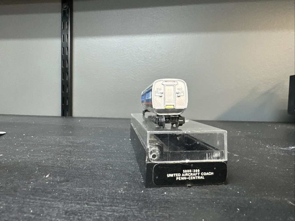 Sold as-is for parts. Missing two axles. This N gauge Bachmann passenger car is perfect for any model railroad enthusiast looking to add to their collection. The United Aircraft Turbo Train Coach Penn Central design is ASIS and will make a great addition to any layout. The 1:160 scale and unit type of unit make it a unique piece to have. The brand, Bachmann, is known for their high-quality model trains and this N gauge passenger car is no exception. It is perfect for those who enjoy collecting unique pieces and adding them to their layout. Whether you are a seasoned collector or just starting out, this Bachmann passenger car is a great addition to any collection.