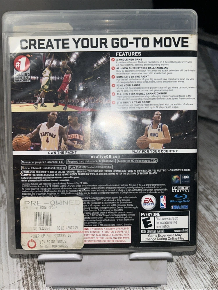 Experience the thrill of live basketball action with NBA Live 08 for Sony PlayStation 3. This video game case and disc only ML338 features the latest technology in sports gaming, allowing you to enjoy an immersive basketball experience. With EA SPORTS as the publisher, you can be assured of high-quality graphics and realistic gameplay. This game is perfect for fans of the NBA Live series and basketball enthusiasts alike. With a rating of E-Everyone, it's suitable for all ages and skill levels. The game includes features such as region code NTSC-U/C (US/Canada), release year 2007, and sub-genre basketball. Get ready to hit the court and experience the excitement of NBA Live 08!