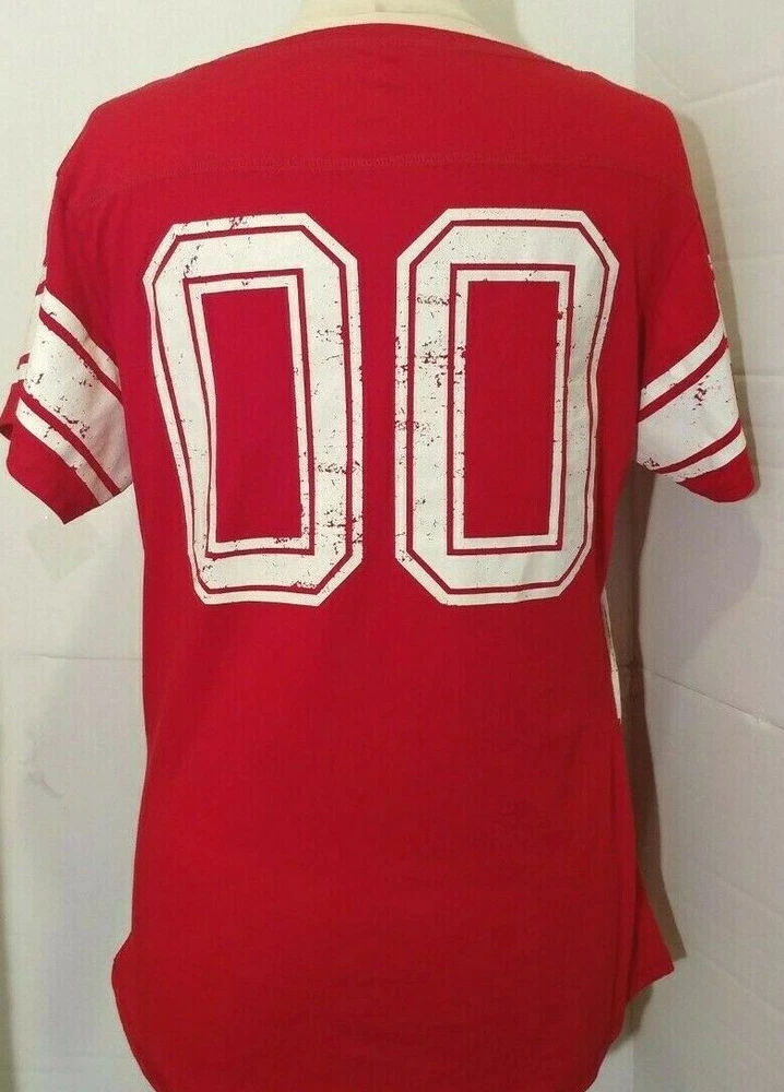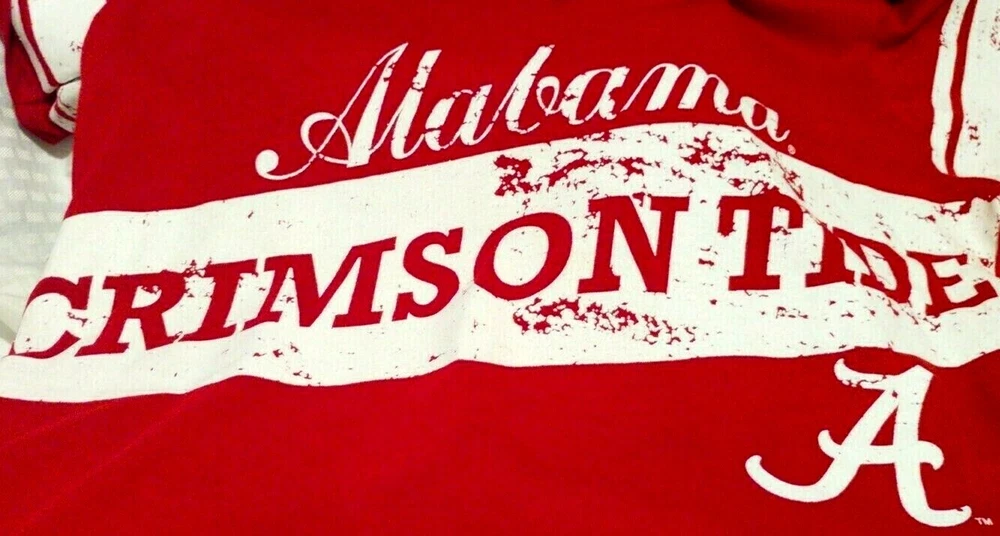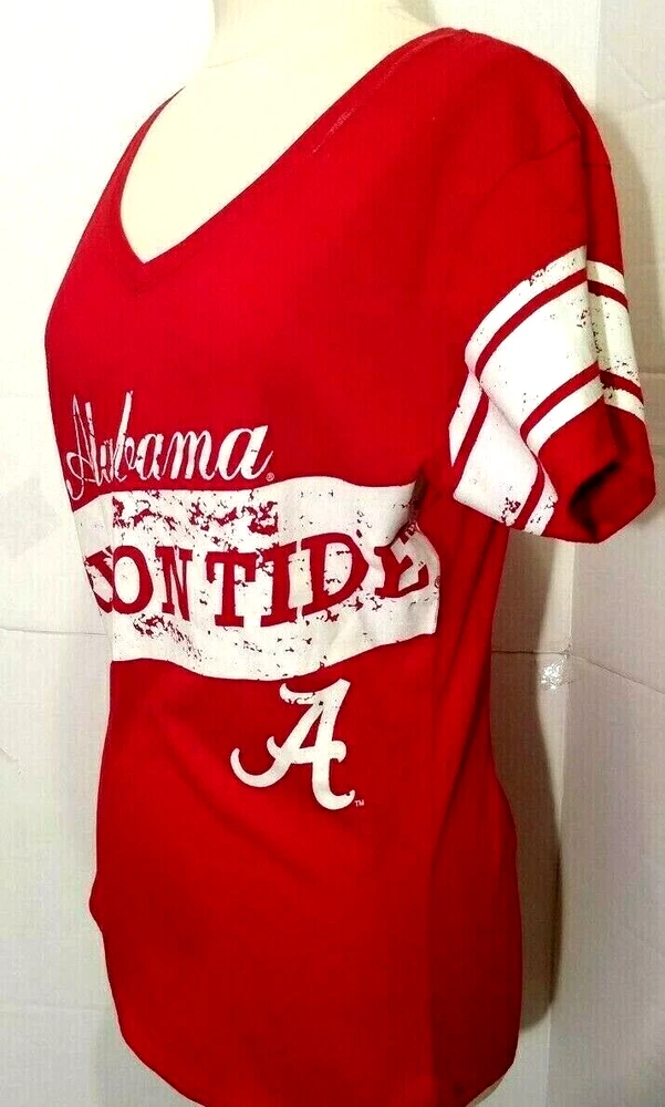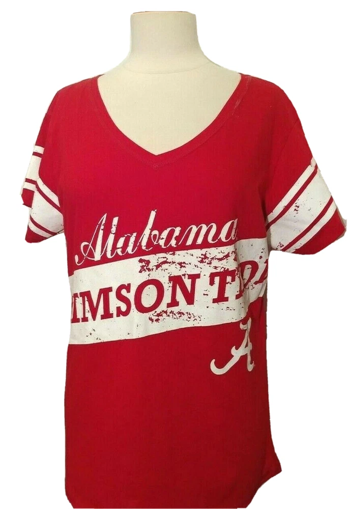 Women's NCAA Alabama Crimson Tide Red w/ white Trim and script Logo Glitter Dust V-neck Label size Small but armpit to armpit - 20" Excellent Condition